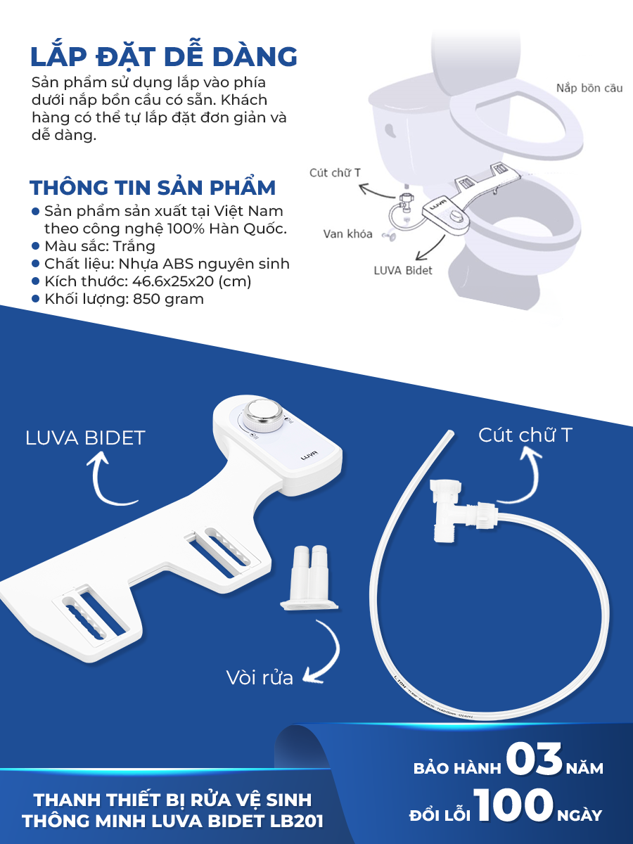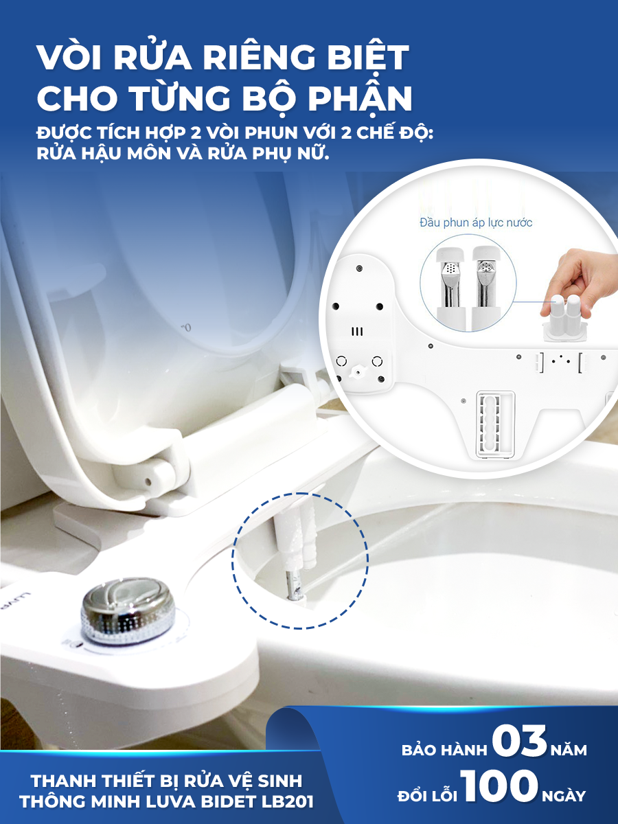 Mua tại TiktokThiết bị vệ sinh thông minh LUVA BIDET LB201, không dùng điện, tự rửa vòi phun, bảo hành 3 năm, đổi lỗi 100 ngày. Thông tin sản phẩm: Thiết Bị Vệ Sinh Thông Minh LUVA BIDET LB201 - 2 Vòi Phun