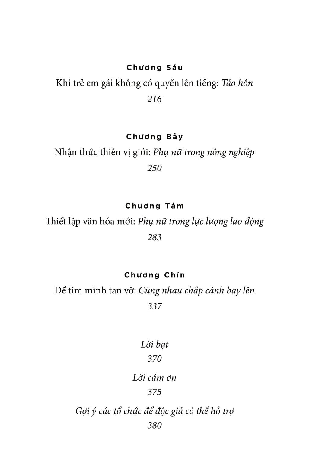 Câu chuyện khó quên của Melinda được hỗ trợ bởi những dữ liệu đáng kinh ngạc khi bà trình bày những vấn đề mà chúng ta cần phải quan tâm - từ tảo hôn, đến sự thiếu tiếp cận với các biện pháp tránh thai cho đến bất bình đẳng giới tại nơi làm việc. Và, lần đầu tiên bà viết về cuộc sống cá nhân và con đường dẫn đến bình đẳng trong hôn nhân của chính m.ình.