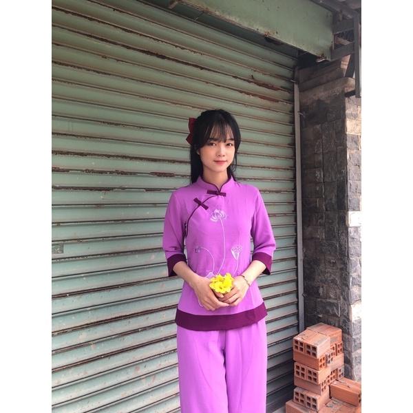 ✨thời trang nữ cổ tàu đi chùa, áo lam truyền thống cao cấp
