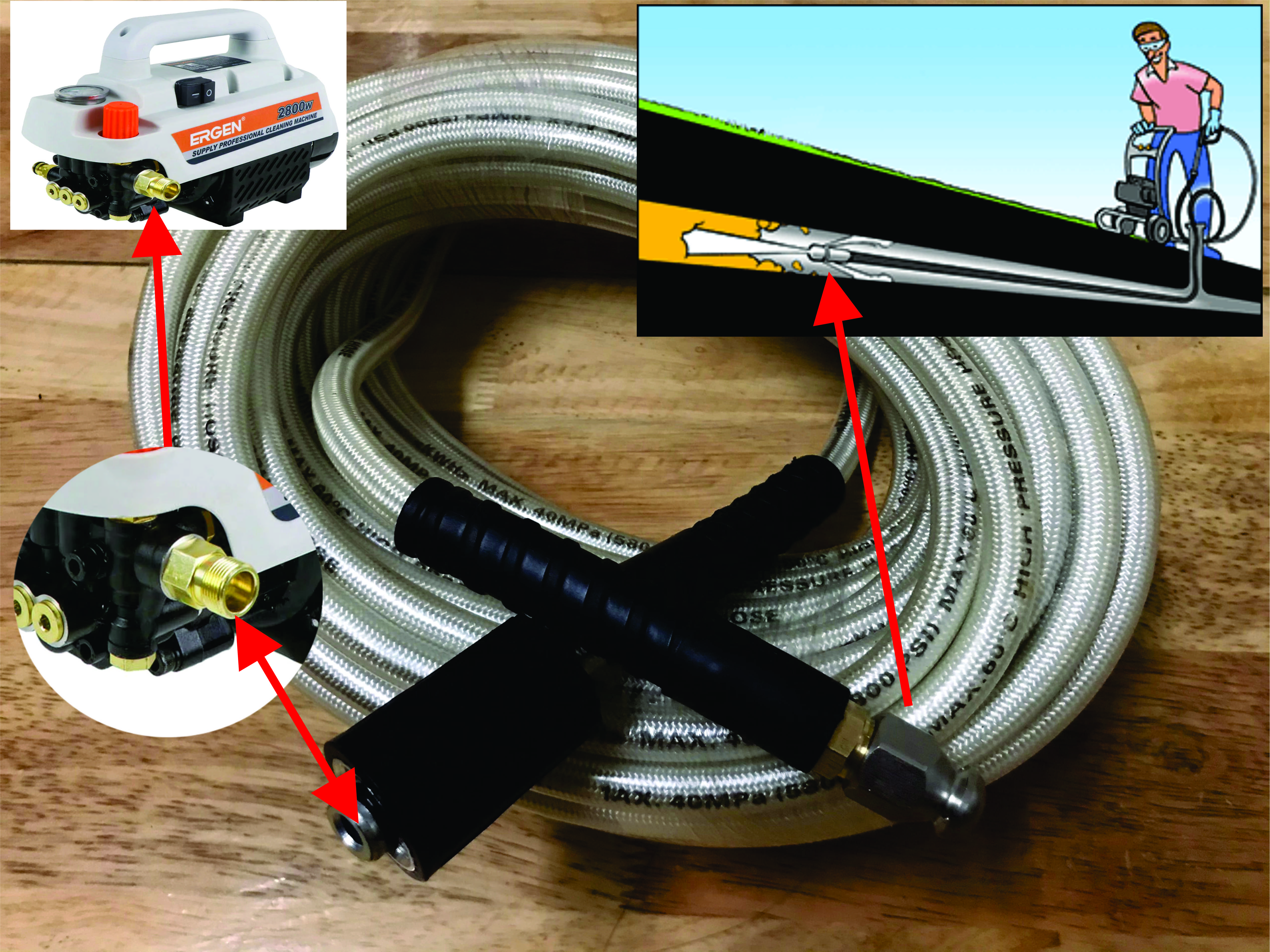 ✨Thông tắc cống - Dây thông tắc vệ sinh bằng máy rửa xe mini gia đình- 30m