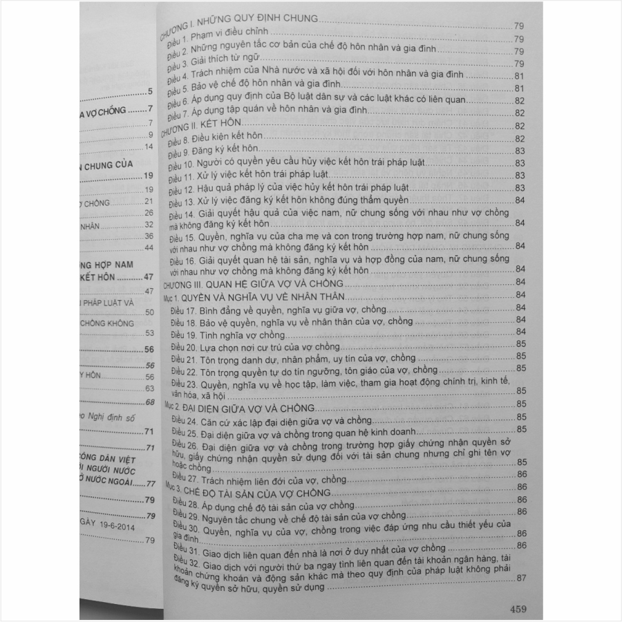 - Toàn bộ sách bìa mềm khổ lớn 20 x 28cm phân phối bởi Nhà sách Nam Việt đều được bọc sách Plastic MIỄN PHÍ và xuất hóa đơn điện tử đầy đủ, nhanh chóng. ...//... Lời giới thiệu: Kết hôn, ly hôn là không chỉ là một vấn đề xã hội phức tạp mà còn là một vấn đề pháp lý, bởi đây là một quan hệ pháp luật, chịu sự điều chỉnh của pháp luật, bao gồm pháp luật hôn nhân và gia đình và pháp luật liên quan. Kết hôn và ly hôn còn là quyền dân sự của cá nhân được Luật Hôn nhân và gia đình ghi nhận và bảo vệ. Đáng chú ý quy định về chế độ tài sản của vợ chồng, cũng như vấn đề chia tài sản chung của vợ, chồng được pháp luật hôn nhân và gia đình quy định khá cụ thể, dễ hiểu và dễ thực hiện, tạo điều kiện thuận lợi cho công dân Việt Nam dễ dàng tiếp cận và thực hiện quyền của mình trong quan hệ hôn nhân. Bên cạnh đó, trong quan hệ hôn nhân thì việc chia tài chung của vơ chồng là vấn đề khá tế nhị và phức tạp, mặc dù đây cũng là một quyền được pháp luật quy định và bảo đảm thực hiện cho mọi công dân. Luật Hôn nhân và gia đình năm 2014 ngoài việc kế thừa các quy định của Luật Hôn nhân và gia đình năm 2000 và loại bỏ những quy định không còn phù hợp, thì đồng thời cũng được bổ sung một số quy định mới mà đặc biệt là các quy định về kết hôn và ly hôn, cũng như chế độ tài sản, nhằm bảo vệ kịp thời quyền lợi ích hợp pháp của các bên trọng quan hệ hôn nhân mà đặc biệt là người vợ và con chưa thành niên, là những bên yếu thế trong quan hệ hôn nhân. ...//... Nội dung sách có 6 phần chính sau: