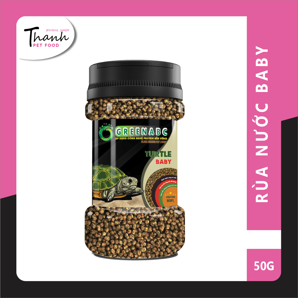 GREENABC là thức ăn bổ dưỡng dành cho RÙA NƯỚC - TURTLE. Đặc biệt sản phẩm GREENABC được sản xuất theo phương pháp Áp dụng công nghệ PROTEIN Bền Vững từ bột đạm G.Meal rất giàu PROTEIN – CANXI – LIPID có trong BSFL, đã được Mỹ (AAFCO) và EU chấp nhận đưa vào công thức cho ngành sản xuất thức ăn vật nuôi.