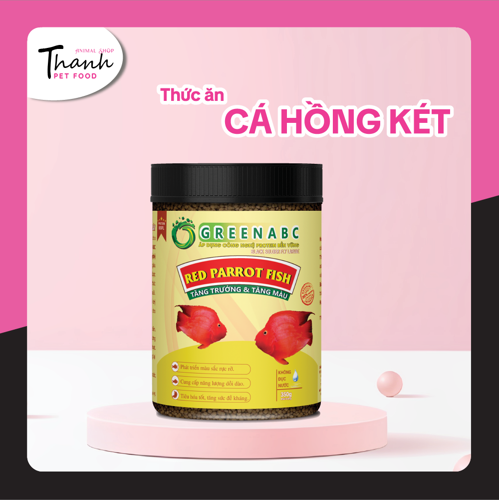 GREENABC - THỨC ĂN CÁ HỒNG KÉT - HÀM LƯỢNG PROTEIN > 40% GREENABC - Thức ăn cao cấp dành cho các loại cá HỒNG KÉT. Đặc biệt sản phẩm GREENABC được sản xuất theo phương pháp Áp dụng công nghệ PROTEIN bền vững từ bột đạm G.Meal rất giàu PROTEIN – CANXI – LIPID có trong BSFL, đã được Mỹ (AAFCO) và EU chấp nhận đưa vào công thức cho ngành sản xuất thức ăn cho vật nuôi. Sản phẩm GREENABC cung cấp các giá trị dinh dưỡng bền vững cho thú cưng, giúp cho Cá Hồng Két:     + Phát triển màu sắc rực rỡ và giữ màu sắc đẹp, bền.     + Đầy đủ chất dinh dưỡng thiết yếu tạo năng lượng dồi dào, cho Cá có một cơ thể khỏe mạnh, linh hoạt.     + Tăng sức đề kháng cho Cá, giúp Cá chống lại các bệnh nấm thường gặp.     + Không đục nước, không gây ô nhiễm nguồn nước. Thành phần dinh dưỡng và hướng dẫn sử dụng: