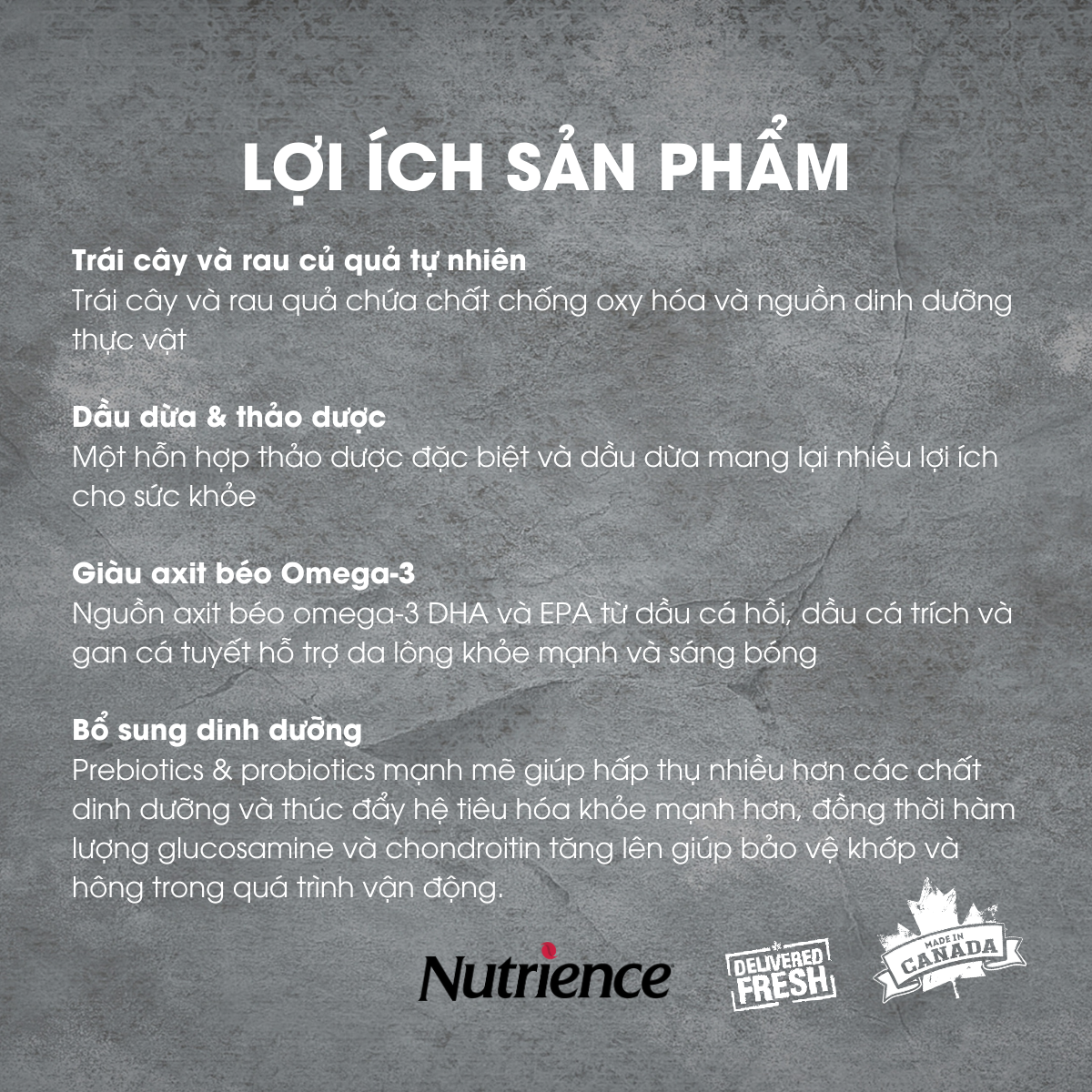 Nutrience Original Adult, Medium Breed cho Giống Chó Trung Bình được phát triển để đáp ứng các mức dinh dưỡng được thiết lập bởi hồ sơ dinh dưỡng thức ăn cho chó của AAFCO về duy trì sức khỏe toàn diện.