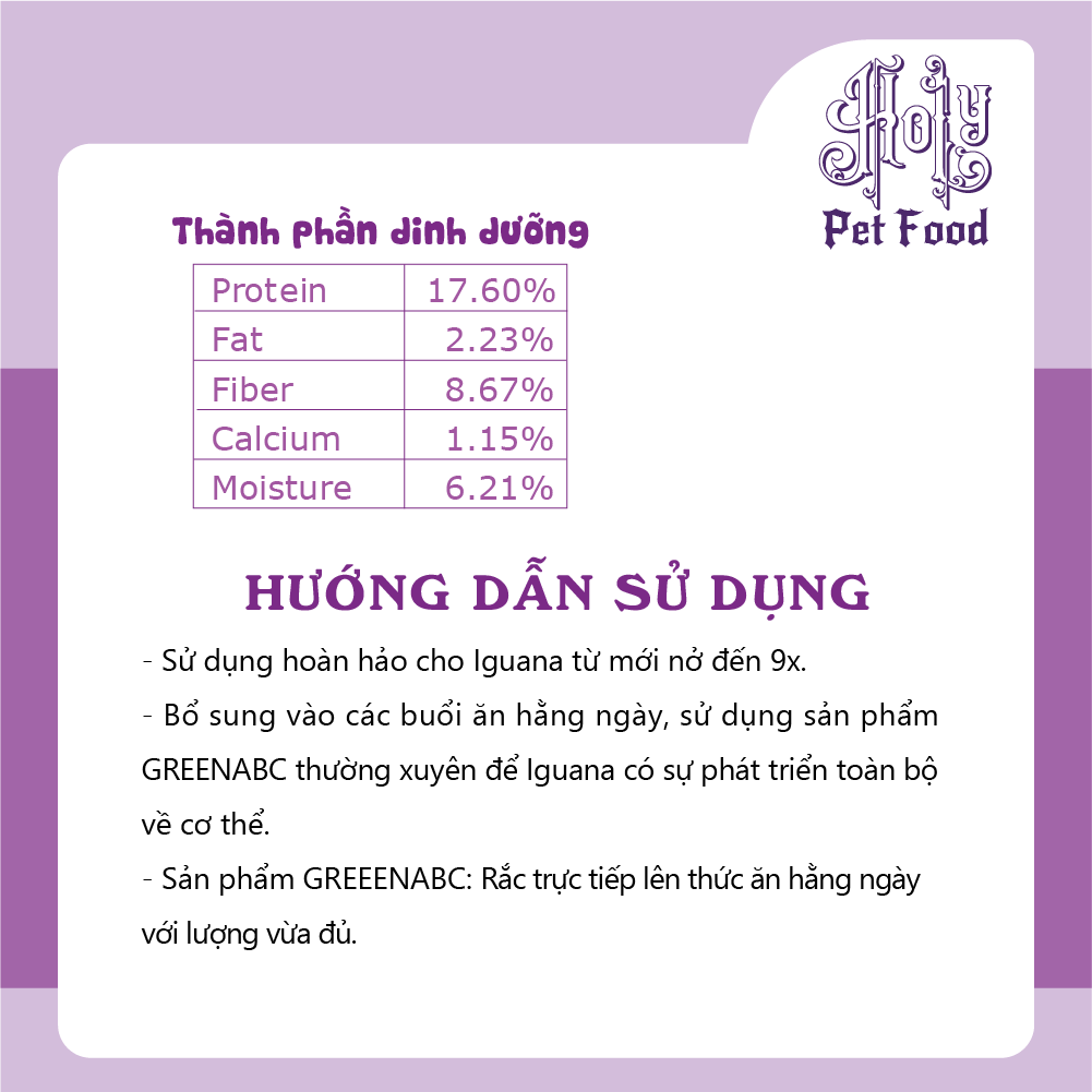 GREENABC - THỨC ĂN IGUANA BABY - Rồng Nam Mỹ Baby từ mới nở đến 9x. GREENABC là thức ăn cao cấp dành cho Iguana Baby - Rồng Nam Mỹ Baby Đặc biệt sản phẩm