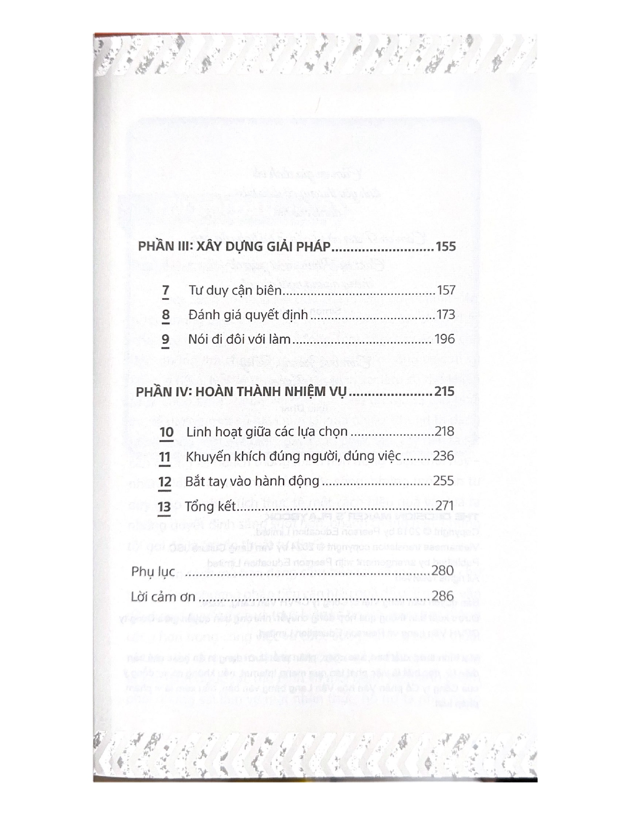 - Giới thiệu Thực Hành 12 Chiến Thuật Tư Duy Ra Quyết Định Cuộc sống chính là kết quả của những quyết định. Mỗi ngày, chúng ta đều phải đưa ra hàng trăm sự lựa chọn khác nhau: từ những lựa chọn đơn giản (như trưa nay ăn gì), cho đến những lựa chọn quan trọng (như làm công việc gì và sống ở đâu). Chúng ta đang sống trong một thế giới ngày càng phức tạp, vậy nên rất cần những mô hình tư duy giúp ta phân tích thực tế một cách hiệu quả và đưa ra những quyết định sáng suốt hơn, nhanh chóng hơn. Cuốn sách mà bạn đang cầm trên tay sẽ mang đến nhiều ví dụ, công cụ và chiến thuật hữu ích để bạn nâng cao chất lượng, tốc độ và hiệu quả đưa ra quyết định. Khi làm chủ được những chiến thuật trong sách, bạn sẽ dễ dàng vượt qua các tình huống tiến thoái lưỡng nan và những vấn đề hóc búa, từ đó thành công hơn trong cả công việc lẫn cuộc sống.