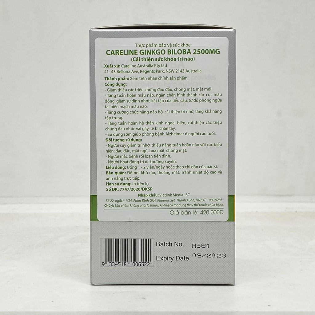 ✨Thực phẩm chức năng Careline Ginkgo Biloba 2500Mg - Viên uống bổ não