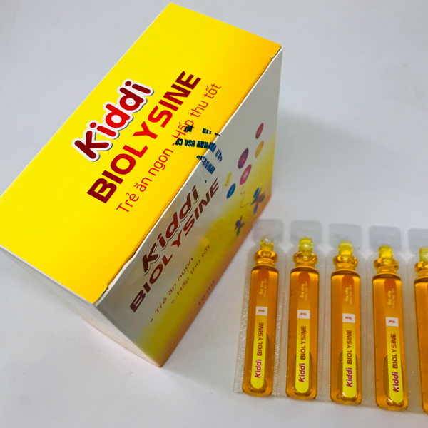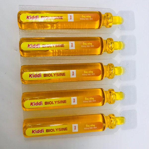 Mua tại TiktokKIDDI BIOLYSINE – Hỗ trợ miễn dịch cho bé THÀNH PHẦN CẤU TẠO Mỗi 200 ml chứa: Lysine 4000mg, Taurin 2400mg, Thymomodulin 1000mg, calci lactat 2000mg, DHA 400mg, VitaminPP 60mg, Vitamin B1 15mg, Vitamin B2 15mg, Vitamin B5 10mg, Vitamin D3 100IU, Kẽm gluconat 100mg. Phụ liệu: đường, nước, natri benzoat vừa đủ 200ml Kiddi Biolysine Hộp 4 vỉ x 5 ống 10ml LYSINE
