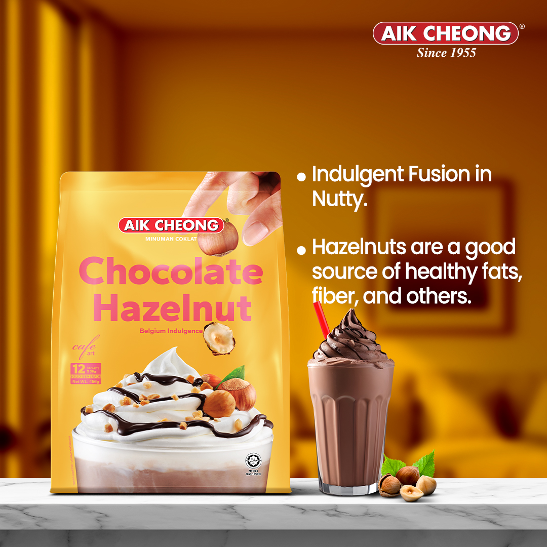 Aik Cheong Chocolate Hazelnut is made with premium-quality chocolate powder and natural hazelnut flavor, delivering a creamy, smooth, and delicious beverage. When mixed with hot water, it releases a captivating aroma that awakens the senses and provides a warm, comforting feeling from the first sip.