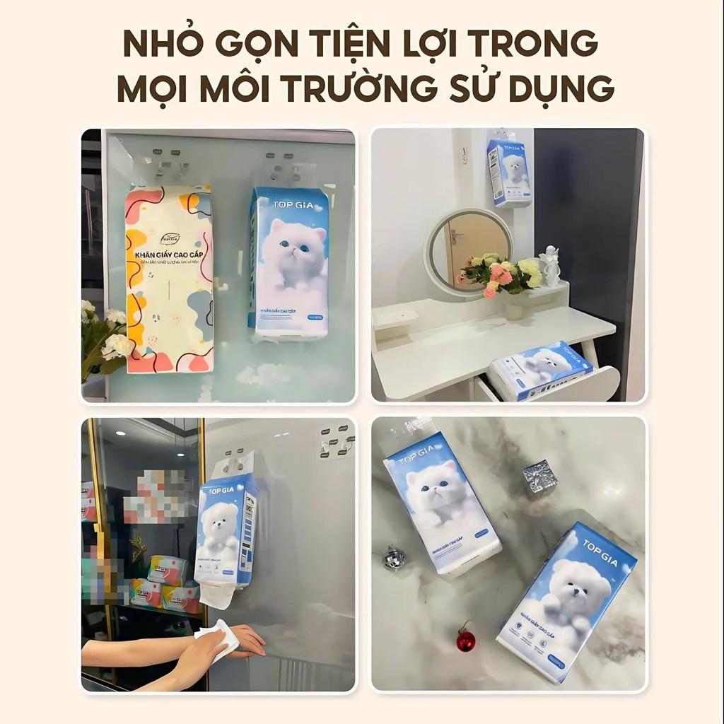 Khăn giấy rút Top Gia 10 bịch GiaGia, giấy vệ sinh treo tường 1000 tờ 4 lớp tặng 3 móc treo