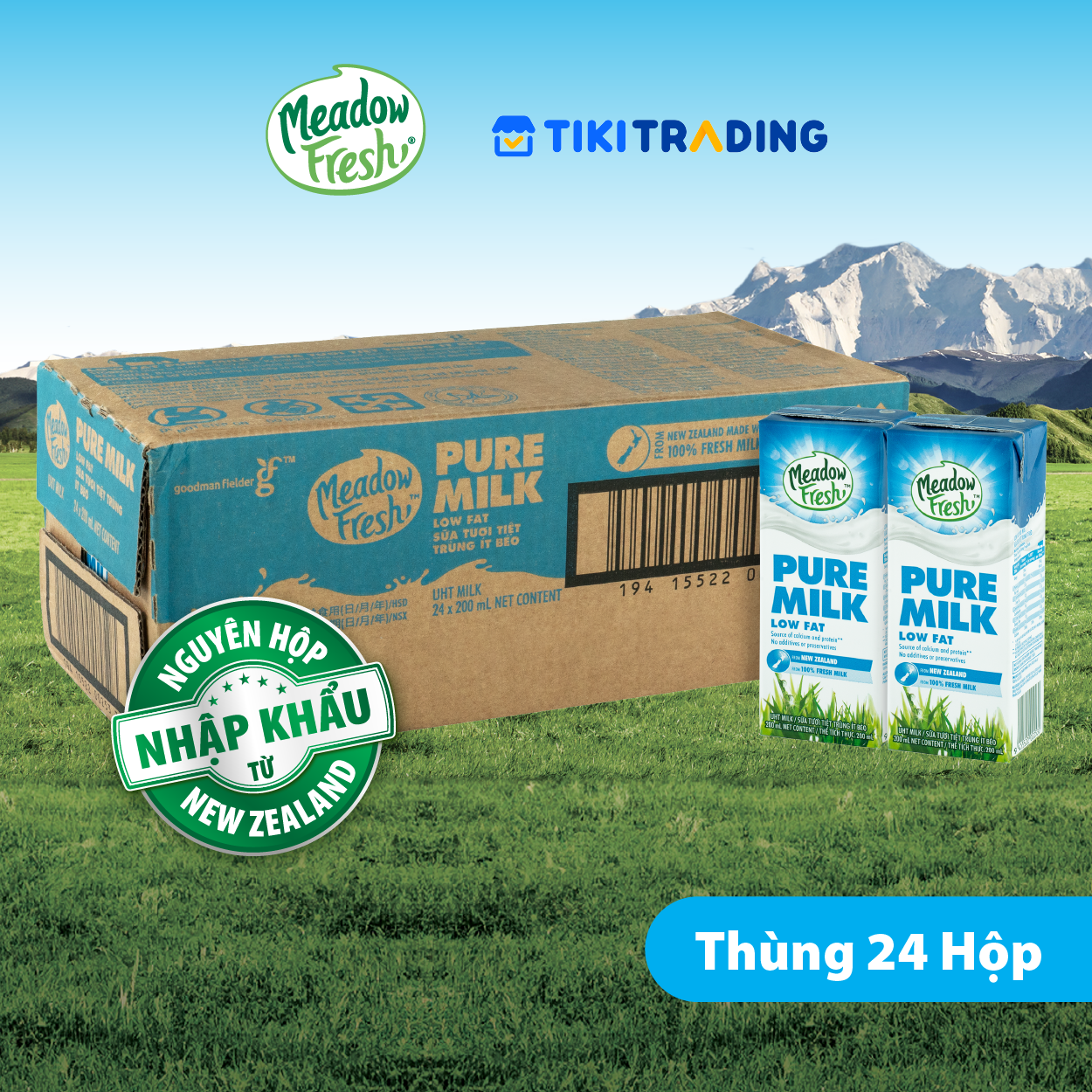 ✨Thùng 24 Hộp Sữa Tươi Ít Béo Meadow Fresh (200ml / Hộp)
