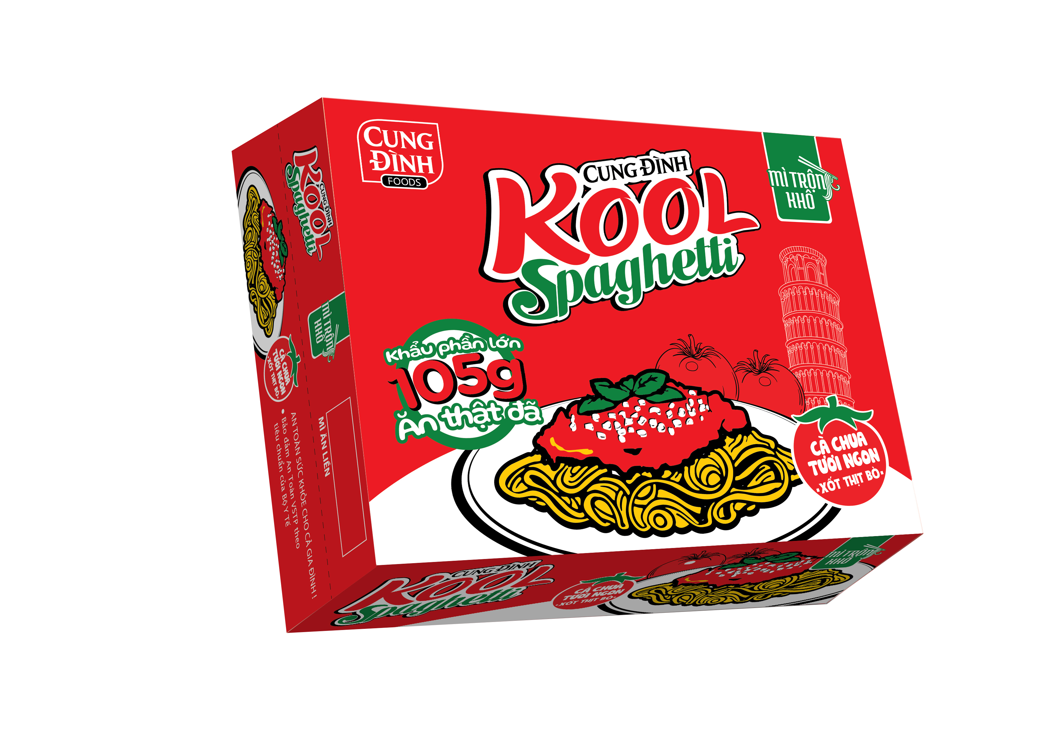 Mua tại Tiktok- Thùng 30 Gói Mì Cung Đình Kool Spaghetti (105g X 30 Gói) được làm từ bột mì, tinh bột khoai mì, chiết xuất nấm men, cà chua, hành tây, hành, lá mùi tàu, rau