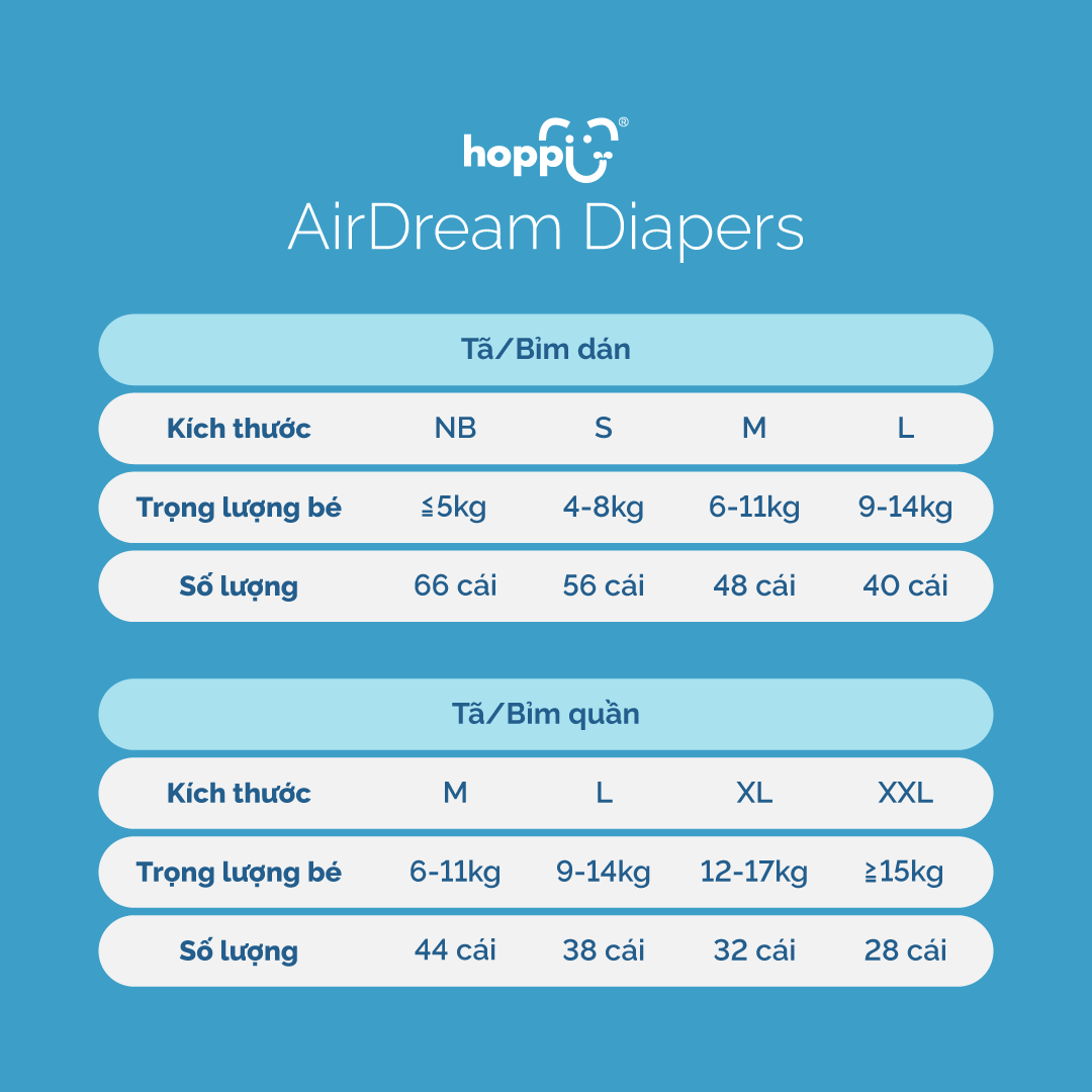 Tã / Bỉm Hoppi AirDream không có lông tơ, không chứa clo và là loại tã mỏng nhất trên thị trường! Được tạo thành từ cấu trúc 7 lớp có độ nén cao, Công nghệ UltraCore 2mm của chúng tôi đưa khả năng hấp thụ lên một tầm cao mới.