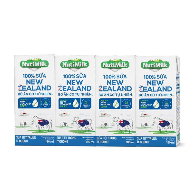 NutiMilk 100% Sữa New Zealand Bò ăn cỏ tự nhiên Ít đường 180ml