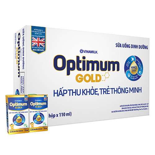Thùng 48 Hộp Sữa Bột Pha Sẵn Vinamilk Optimum Gold 180ml Optimum Gold mới, chất lượng được công nhận bởi UKAS - Anh Quốc, với công thức để hấp thu này được bổ sung thêm