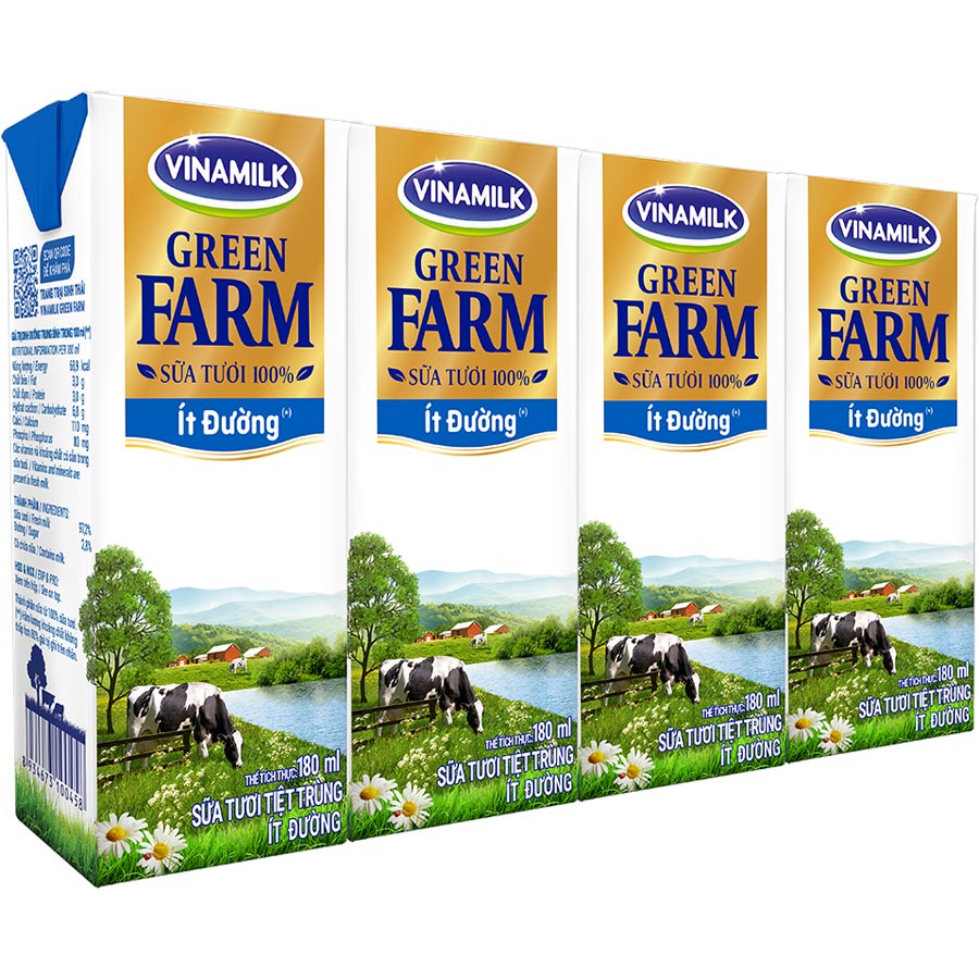 - Sữa Tươi Tiệt Trùng Vinamilk Green Farm - Sữa Tươi 100% Ít Đường 110ml cao cấp mới với nguồn sữa tươi 100% thuần khiết từ hệ thống trang trại sinh thái Vinamilk Green Farm