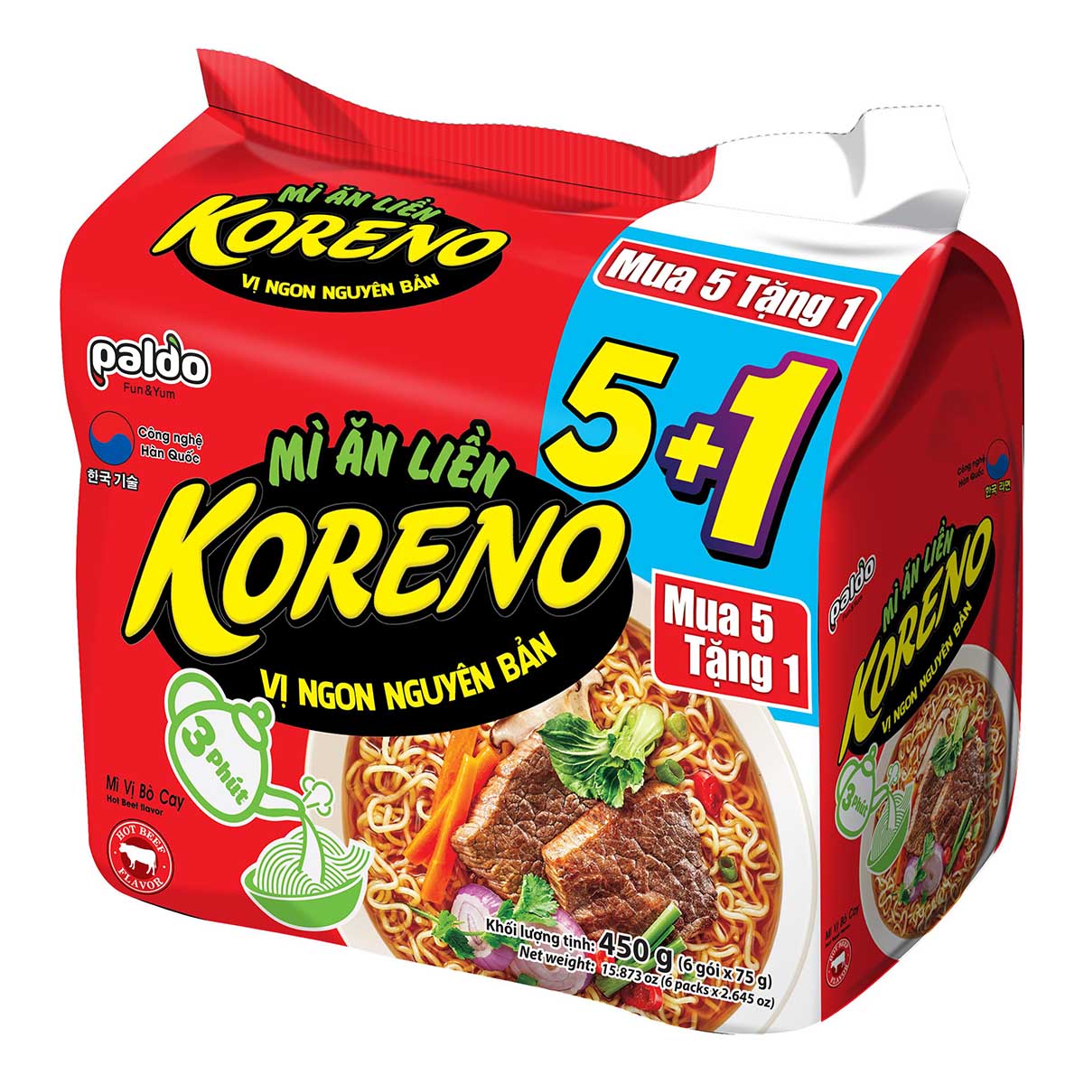 ✨Thùng 6 Lốc Mì ăn liền Koreno Vị Bò Cay Lốc 5 +1 gói
