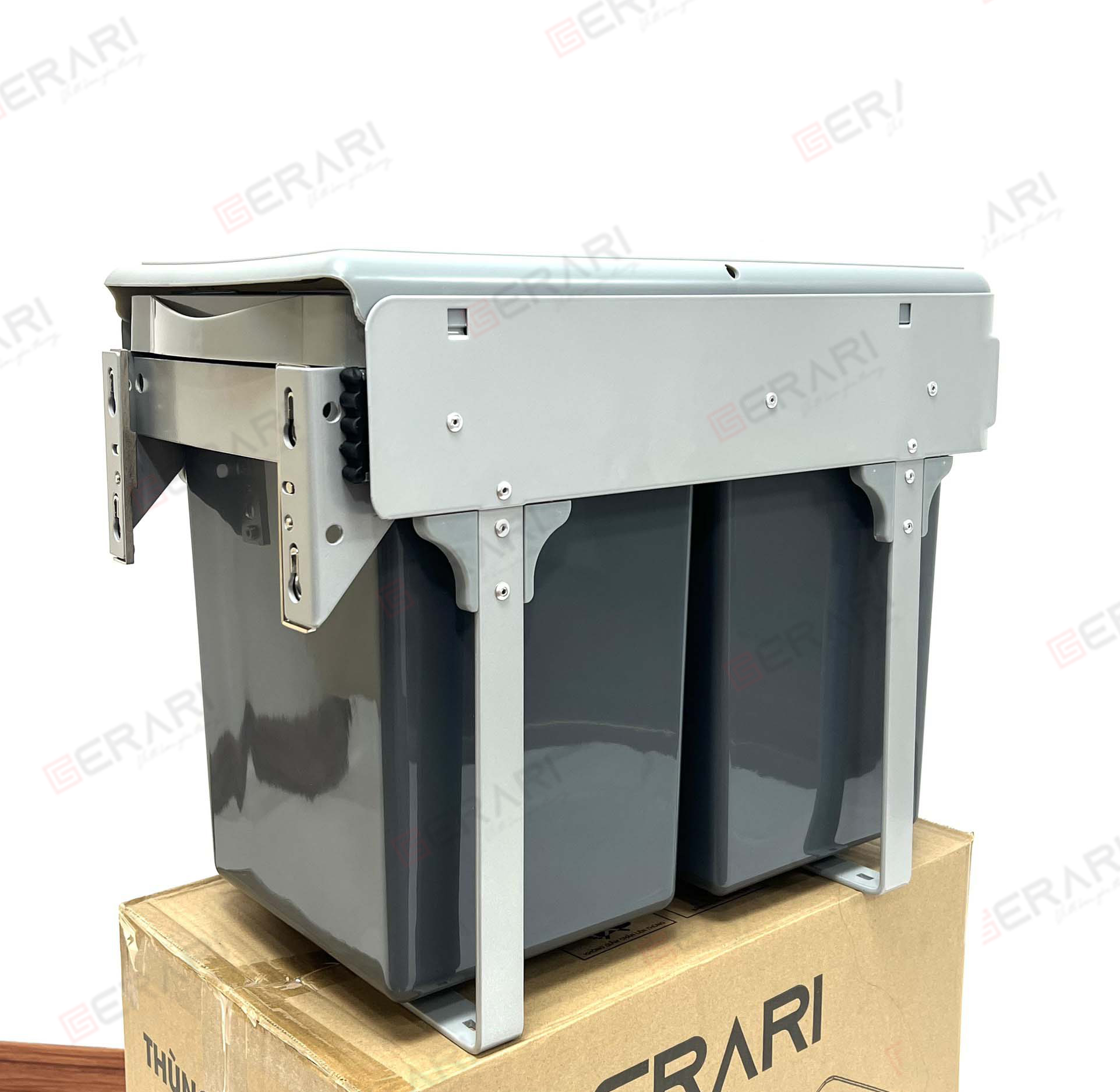 Mua tại TiktokThùng rác đôi gắn cánh (hoặc âm tủ Gerari chính hãng) có 2 ngăn riêng biệt, thuận tiện cho việc phân loại rác vô cơ và rác hữu cơ.
