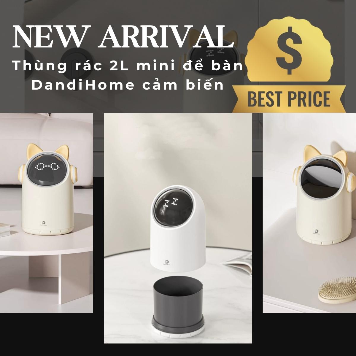 Thùng rác để bàn 2L DandiHome cảm biến tự động - Bảo hành 12 tháng