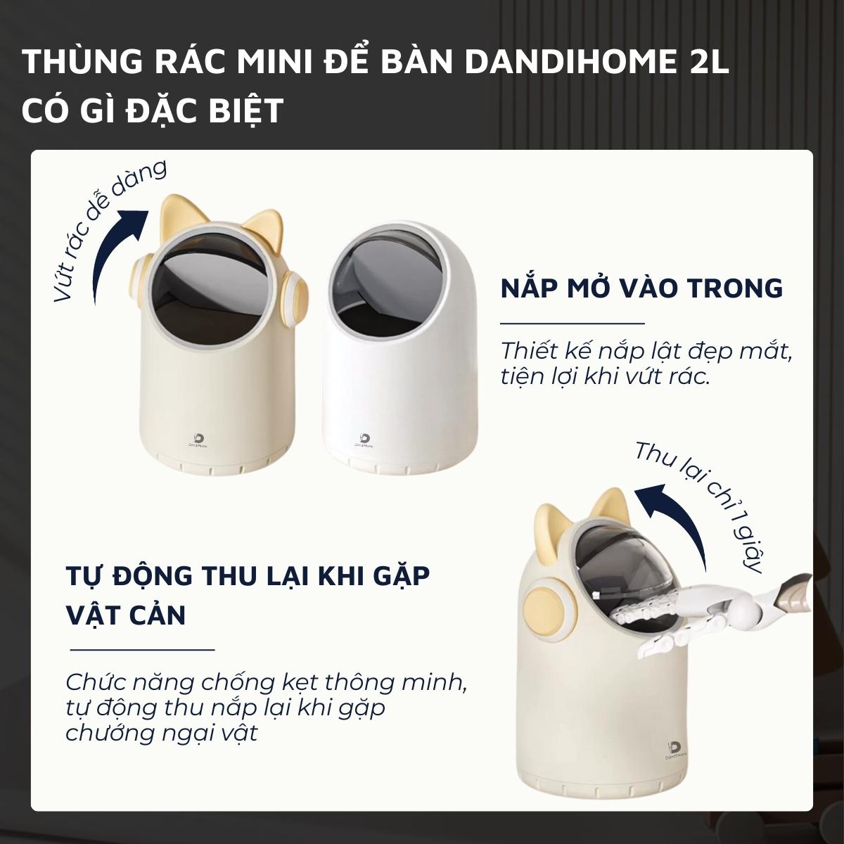 Mua tại TiktokThùng rác mini để bàn DandiHome 2 lít cảm biến tự động đóng mở