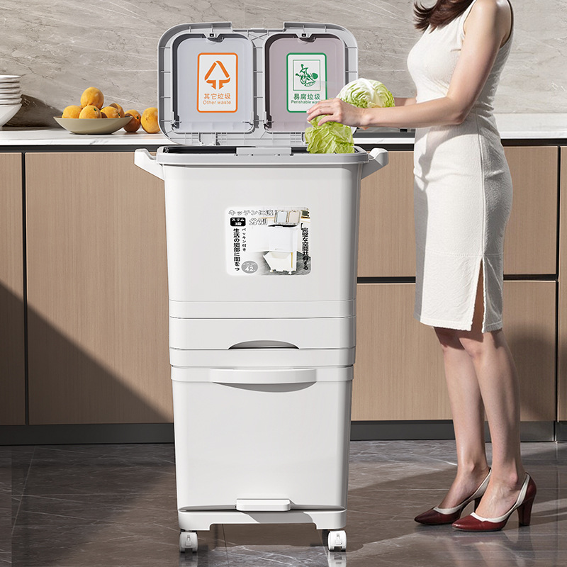 - Thùng rác thông minh cao 3 tầng, phù hợp cho phòng bếp với dung tích 40L. Đặc điểm: Có nắp đậy giúp giữ mùi hôi và ngăn côn trùng xâm nhập.