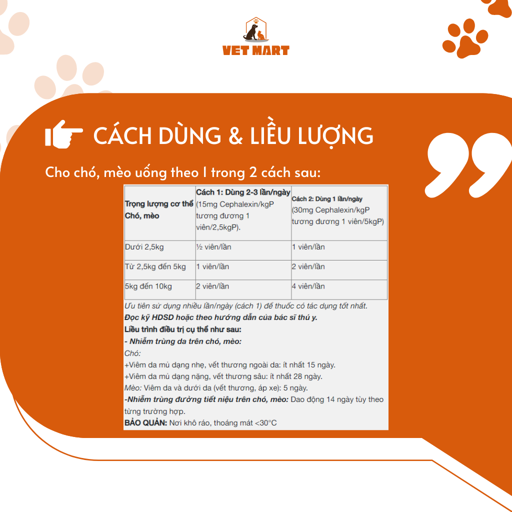 ️CÔNG DỤNG: - Đặc trị nhiễm trùng da trên chó, mèo (bao gồm cả nhiễm trùng sâu và ngoài da). - Đặc trị nhiễm trùng đường tiết niệu, viêm thận và viêm bàng quang trên chó, mèo. ️THÀNH PHẦN: - Cephalexin 75 mg - Tá dược đặc biệt vừa đủ 350 mg ️CÁCH DÙNG VÀ LIỀU LƯỢNG: Cho chó, mèo uống theo 1 trong 2 cách sau: CAM KẾT: - Tất cả sản phẩm của shop đều là hàng CHẤT LƯỢNG - CHÍNH HÃNG 100% có nguồn gốc rõ ràng Trong trường hợp phát hiện hàng giả, hàng kém chất lượng sẽ HOÀN TIỀN và đền bù 10 LẦN giá trị sản phẩm. - Sản phẩm của shop luôn có hạn sử dụng dài và luôn là HÀNG MỚI ️CHÍNH SÁCH ĐỔI TRẢ VET MART xin phép hỗ trợ khách hàng đổi trả sản phẩm trong trường hợp: Bước 1: Cung cấp clip & hình chụp tất cả sản phẩm khách nhận được, và nhắn tin cho shop Bước 2: Shop sẽ hỗ trợ gửi lại hàng cho khách nếu THIẾU sản phẩm. Và shop sẽ hỗ trợ đổi trả sản phẩm 1-1 nếu gửi SAI MẪU, sản phẩm lỗi do phía nhà sản xuất *Tất cả chi phí phát sinh, shop sẽ chịu* Lưu ý: - Shop chỉ đổi trả sản phẩm trong tình trạng CHƯA BÓC TEM và CHƯA QUA SỬ DỤNG sản phẩm - Tất cả trường hợp phát sinh bắt buộc trong thời gian 24h sau khi xác nhận đơn hàng được giao thành công. Quý khách vui lòng cung cấp đầy đủ clip từ lúc khui kiện hàng và hình ảnh toàn bộ sản phẩm khách hàng nhận được, nếu không đủ những điều kiện trên, shop xin phép không hỗ trợ thêm - Giữ hóa đơn dán trên kiện hàng để làm căn cứ bảo hành === #Fivevet #Fivevetforpet #FivePet #thúcưng #Fivecelexin