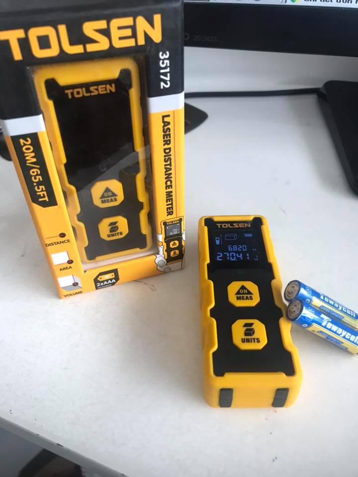 Thương hiệu Tolsen chuyên thiết kế, sản xuất, lắp ráp, cung cấp các thiết bị và dụng cụ công nghiệp dân dụng cỡ lớn và các loại dụng cụ cầm tay đa năng chuyên nghiệp nổi tiếng về chất lượng và hậu mãi tuyệt vời. Các công cụ TOLSEN tập trung vào việc chế tạo các dụng cụ cầm tay chất lượng chuyên nghiệp và các sản phẩm phần cứng liên quan. Tất cả các sản phẩm của TOLSEN đều được kiểm soát chặt chẽ ở mọi bước trong quá trình thiết kế, sản xuất, đóng gói và kiểm soát chất lượng. Các công cụ TOLSEN tin rằng các công cụ chất lượng đề cập đến khả năng sử dụng, hiệu quả và hiệu suất Tolsen có phạm vi sản phẩm khá rộng rãi với trên 2000 sản phẩm bao gồm đủ dụng cụ cầm tay, dụng cụ cơ khí, dụng cụ buộc chặt, dụng cụ cắt, dụng cụ đo, dụng cụ vẽ, vật phẩm PPE, phụ kiện dụng cụ điện, túi và dụng cụ cách điện, Thông số kĩ thuật -Mã sản phẩm: 35172 -Thương hiệu: TOLSEN -Xuất xứ: Trung Quốc -Phạm vi đo: 0,2 - 20m -Kích thước: 100 32,5 22mm -Chức năng: Đo khoảng cách -Phạm vi đo: 20 mét -Độ chính xác uốn khúc: ± 2 mm -Loại pin: 2 * AAA 1.5V -Tuổi thọ pin: 5000 lần đo -Đèn nền -Tính năng, đặc điểm -Đo khoảng cách, -Kích thước nhỏ -Cực kỳ dễ sử dụng, -Vỏ cao su mềm -Hoàn hảo cho người dùng DIY. -Đóng gói: hộp màu