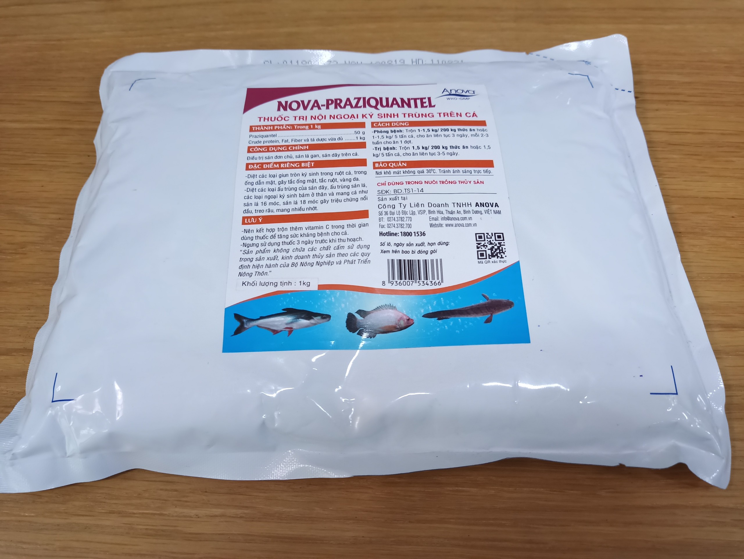 Thuốc Ngăn Ngừa Nội – Ngoại Ký Sinh Trùng Trên Cá Nova – Praziquantel Mã hàng: Nova – Praziquantel Hãng sản xuất: Anova – Việt Nam Quy cách: 1kg/gói THÀNH PHẦN: