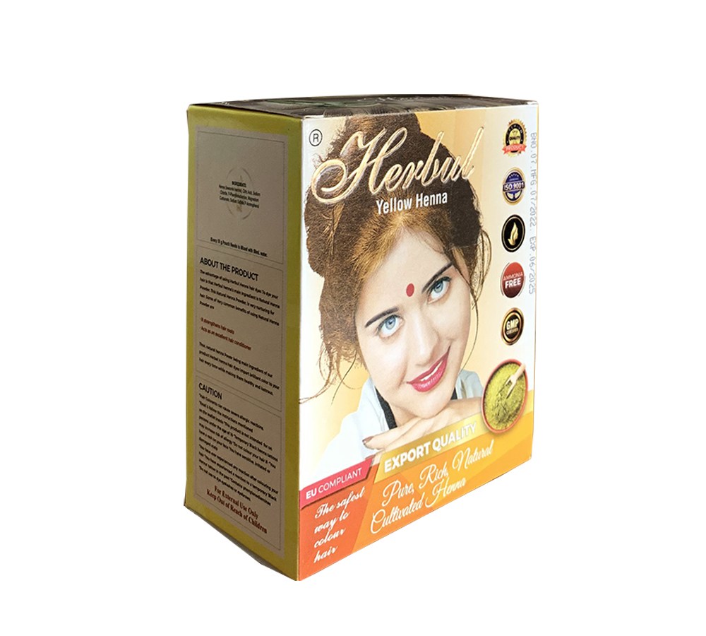 Thuốc nhuộm tóc Herbul Henna - Ấn Độ, chiết xuất từ bột henna, lên màu tự nhiên Henna tên gọi khoa học là Lawsonia innermis, là lá của một loại cây bụi nhỏ thuộc hệ thực vật