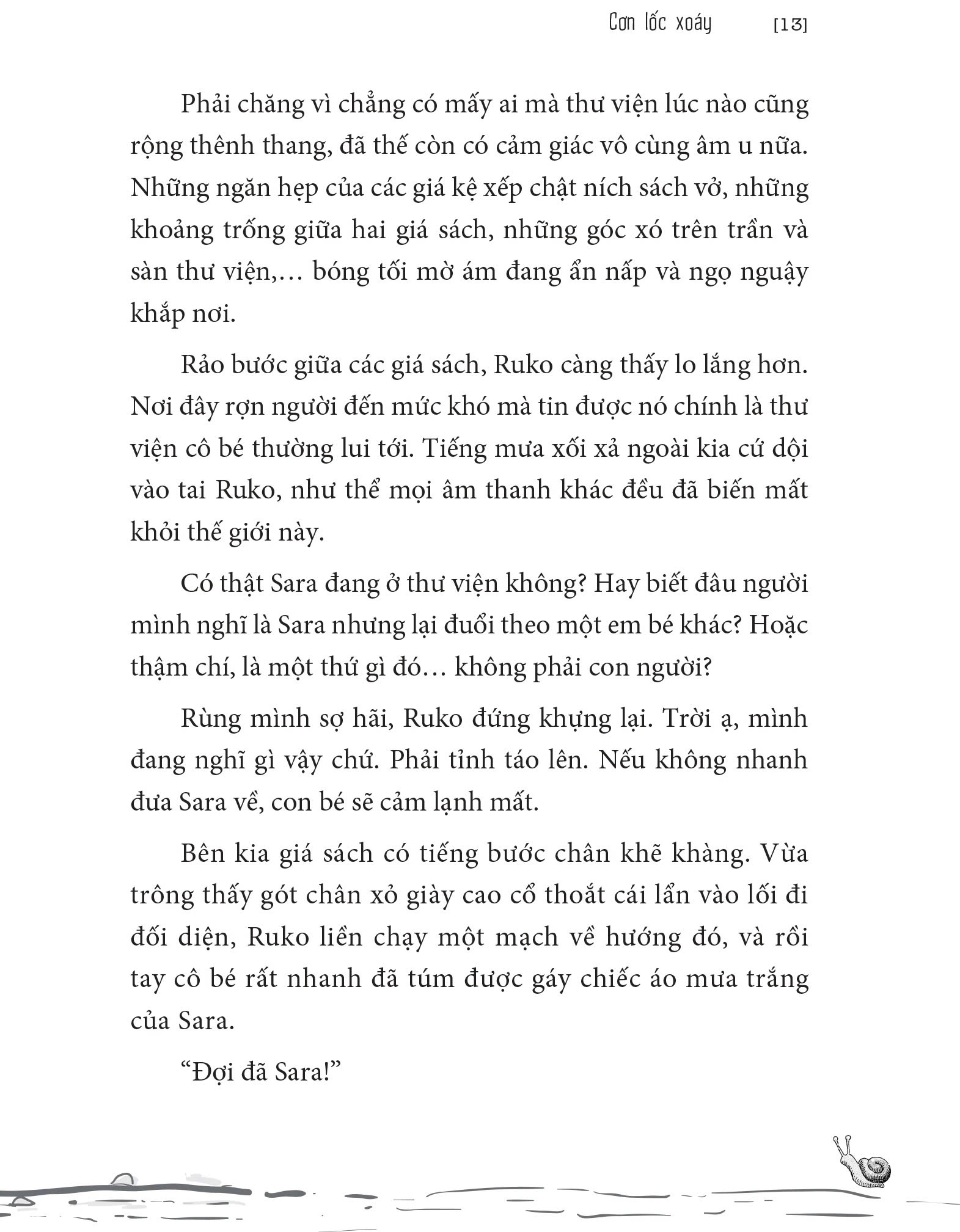 Tiệm sách cơn mưa - Cơn lốc xoáy nằm trong series Tiệm sách cơn mưa của tác giả Reiko Hinata và được minh họa bởi họa sĩ Hisanori Yoshida. Trong 2 phần đầu của “Tiệm sách cơn mưa” Ruko cùng em gái Sara đã trải qua những chuyến phiêu lưu để khám phá ý nghĩa của những trang sách và tìm thấy giá trị của ước mơ cùng trí tưởng tượng. Trong tập 3 “Cơn lốc xoáy” độc giả lại có cơ hội cùng các nhân vật trong sách khám phá ra giá trị đích thực của tình bạn bằng một chuyến phiêu lưu không kém phần hấp dẫn.