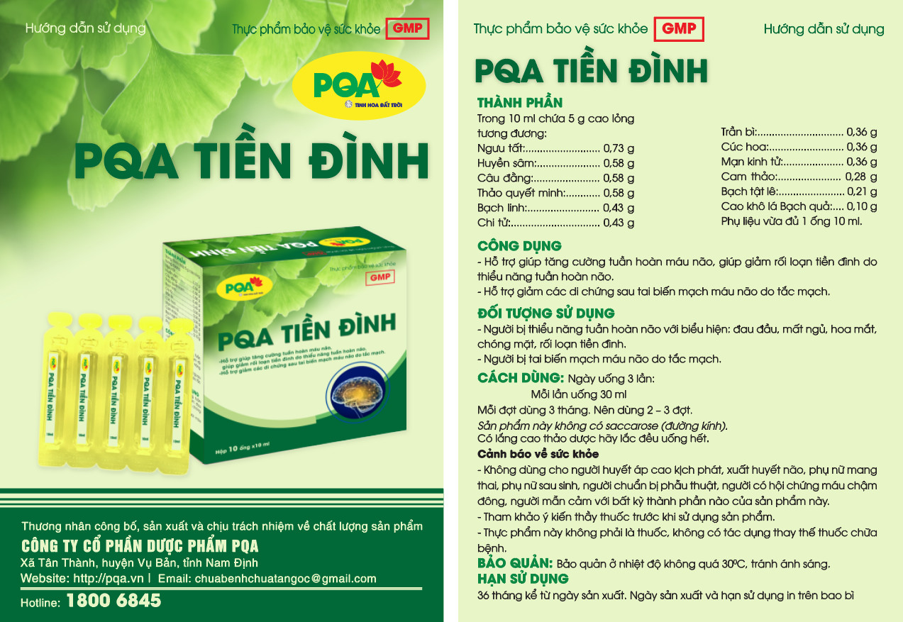 Mua tại TiktokTiền Đình PQA Hỗ Trợ Tăng Cường Tuần Hoàn Máu Não, Tai Biến, Giảm Các Triệu Chứng Sau Tai Biến Hộp 10 Ống THÔNG TIN SẢN PHẨM: