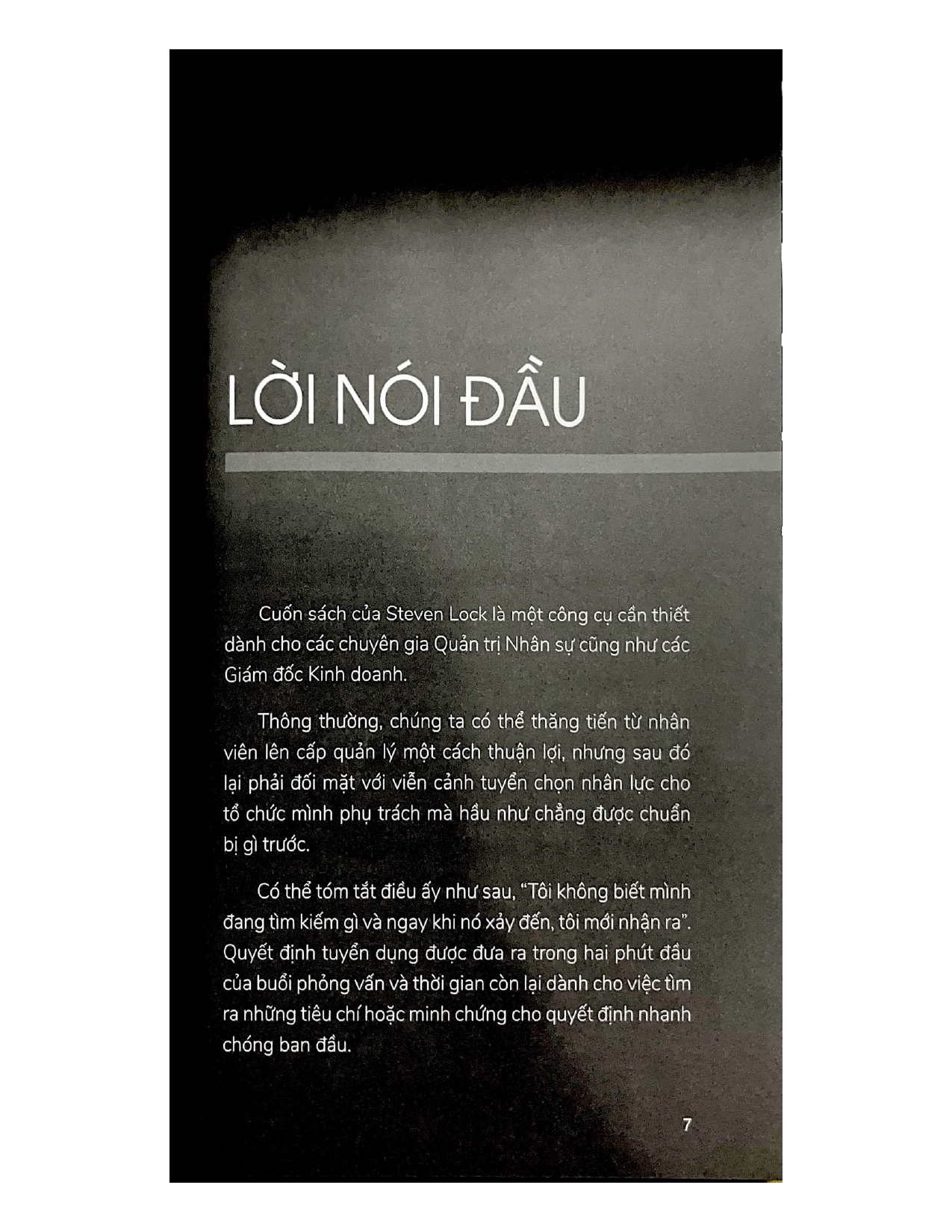 Chúng ta có thể thăng tiến từ nhân viên lên cấp quản lý một cách thuận lợi, nhưng sau đó lại phải đối mặt với viễn cảnh tuyển chọn nhân lực cho tổ chức mình phụ trách mà hầu như chẳng được chuẩn bị gì trước. Việc tuyển dụng sai có thể gây thiệt hại rất lớn về thời gian, năng suất và chi phí cơ hội cho công ty và cả chính bản thân ta.
