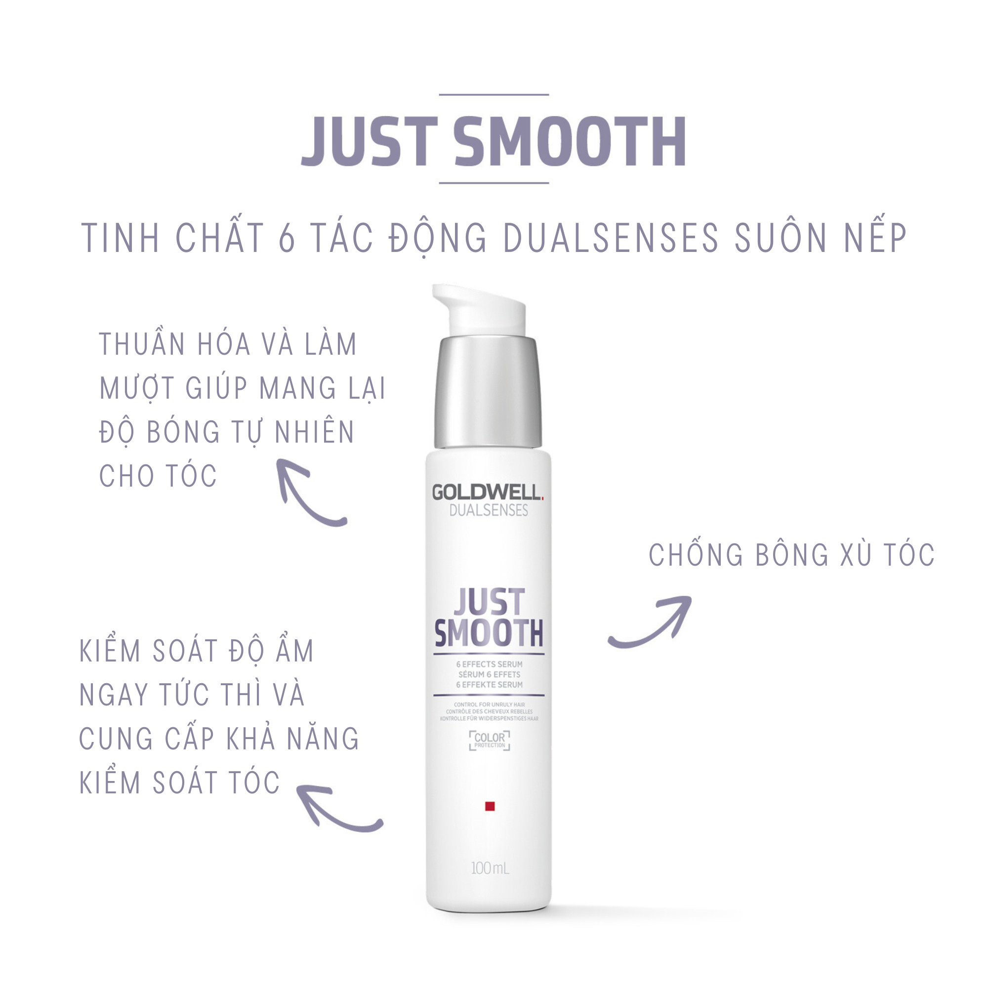 Tinh Chất 6 Tác Động Dưỡng Tóc Mềm Mượt Goldwell Just Smooth Giảm Xơ Rối, Dưỡng Tóc Chắc Khỏe 100ml - Phù hợp với tình trạng tóc: + Bông xù, xơ, rối + Tóc đang