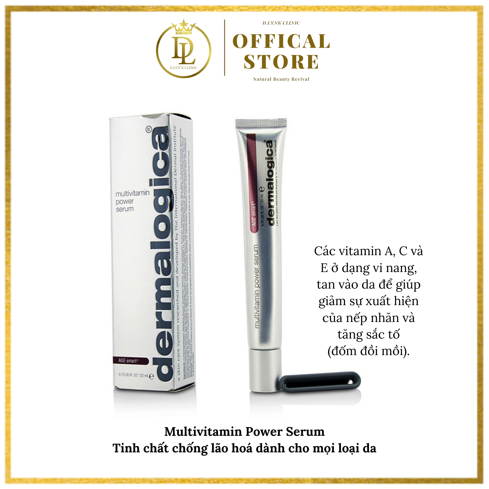 Tinh chất chống lão hóa Dermalogica Multivitamin Power Serum 22ml dành cho mọi loại da Tinh Chất Chống Lão Hóa Dermalogica Multivitamin Power Serum là một trong những sáng tạo mới nhất của Dermalogica nhằm hỗ trợ làm giảm và ngăn ngừa lão hoá, được tạo nên từ các loại vitamin hữu ích như A, C, E giúp gia tăng sự phục hồi tự nhiên của da, giảm các nếp nhăn, đốm đồi mồi, hạn chế quá trình lão hoá. Các loại peptide protein trong sản phẩm này còn giúp nâng cao độ đàn hồi da, giảm thiểu các tác nhân sinh hoá gây lão hoá da từ bên trong. THÔNG TIN SẢN PHẨM