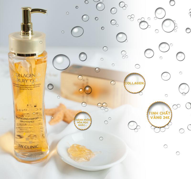 - Collagen & luxury gold 3w clinic chính hãng có khá nhiều thành phần khác nhau nhưng thành phần chính của nó vẫn là những tinh chất collagen tươi tự nhiên sẽ kết hợp với tinh chất vàng 24k.