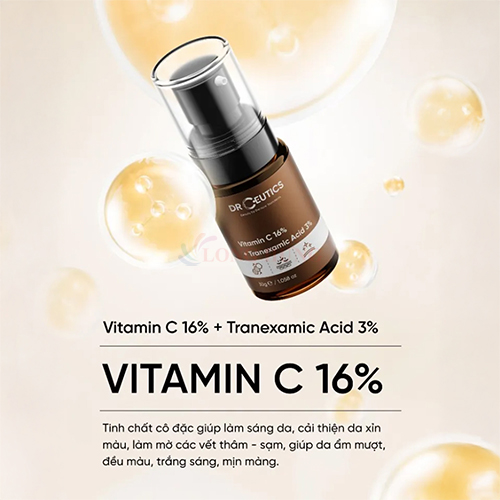 DrCeutics Serum Vitamin C 16% + Tranexamic Acid 3% 30ml Ngăn Ngừa Lão Hóa Và Làm Sáng Da