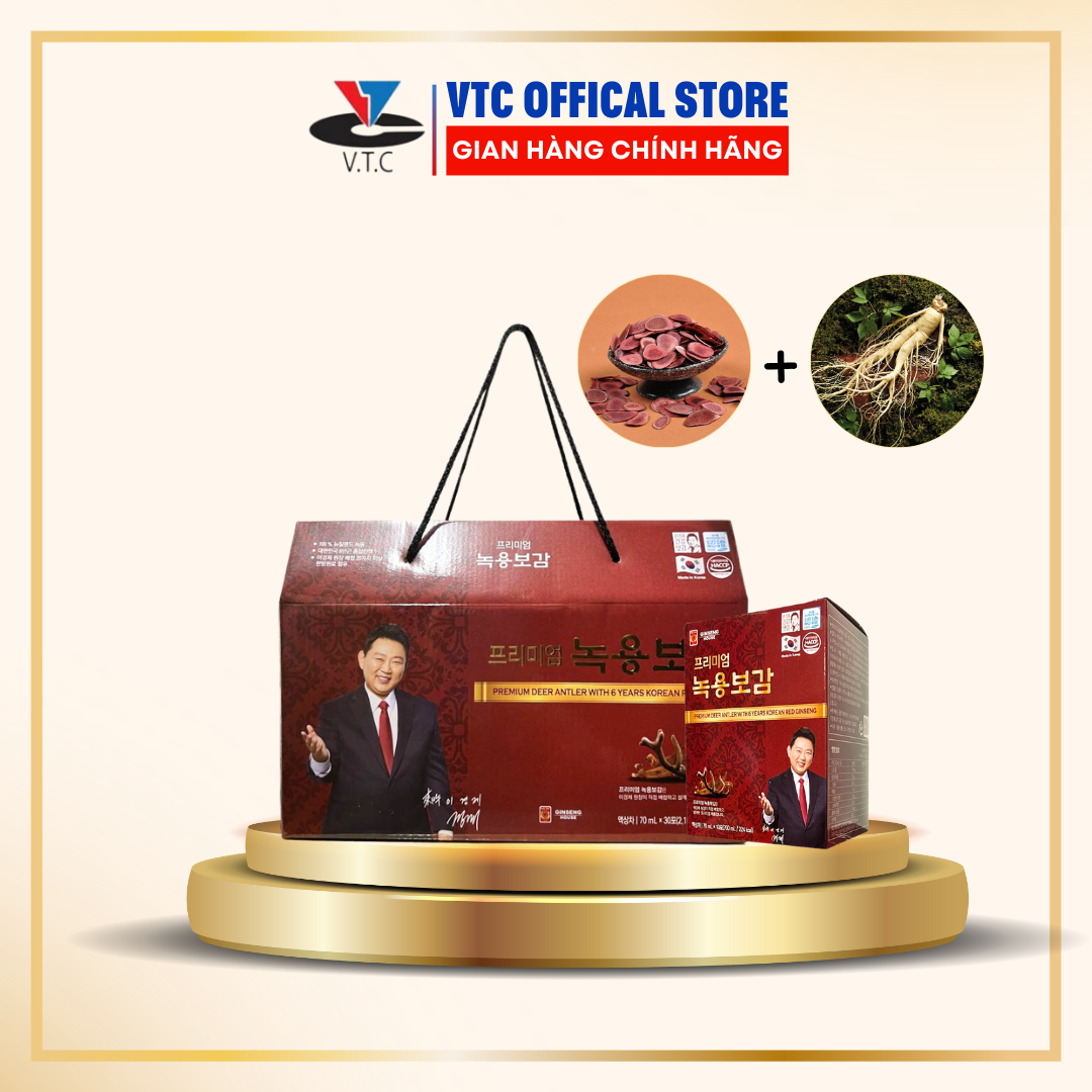 Premium Deer Antler With 6 Years Korean Red Ginseng Chiết Xuất Nhung Hươu Và Hồng Sâm Hàn Quốc 6 Năm Tuổi Quy cách: 1 HỘP 30 gói ( gồm 3 hộp lớn, mỗi hộp chứa