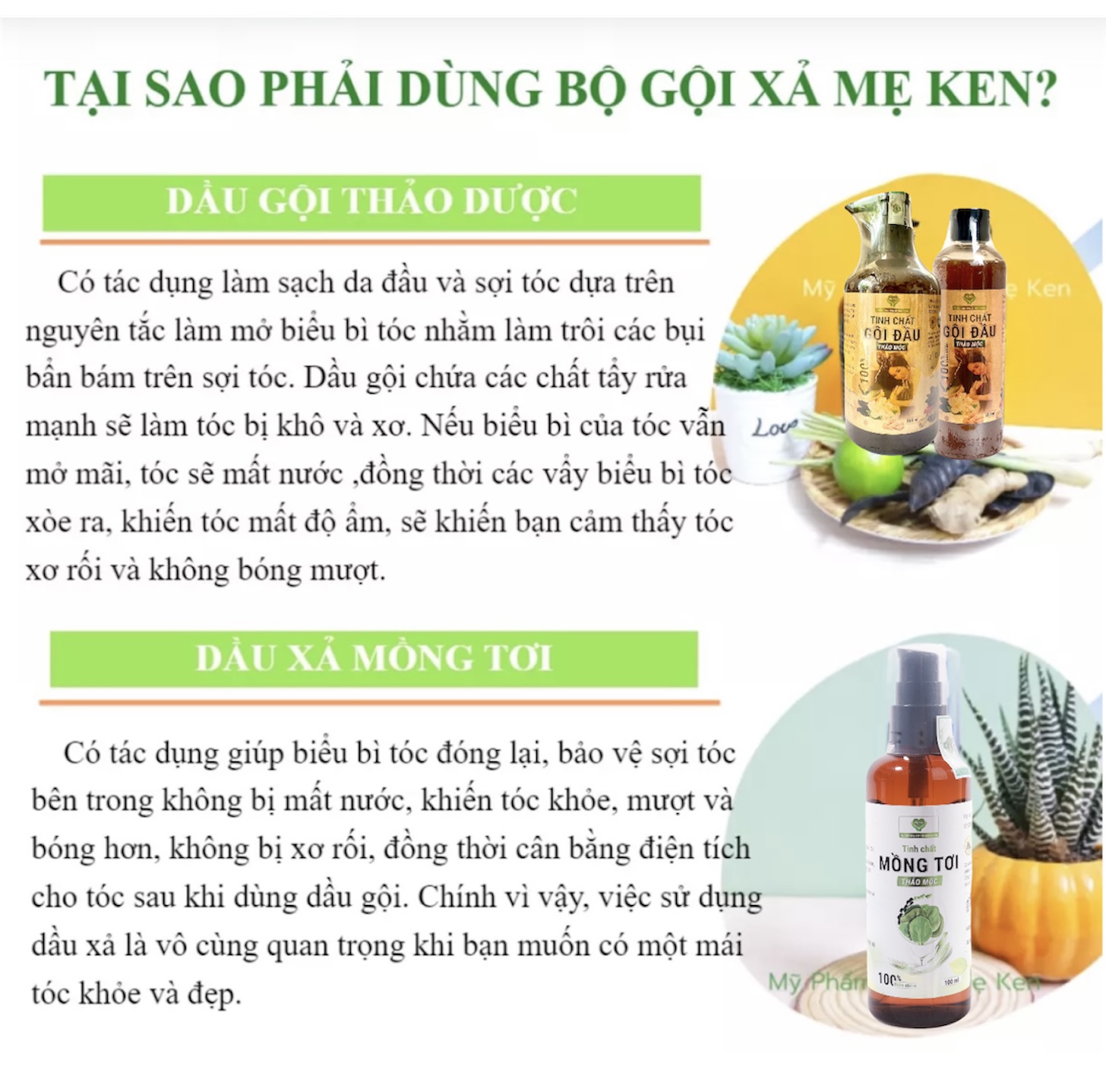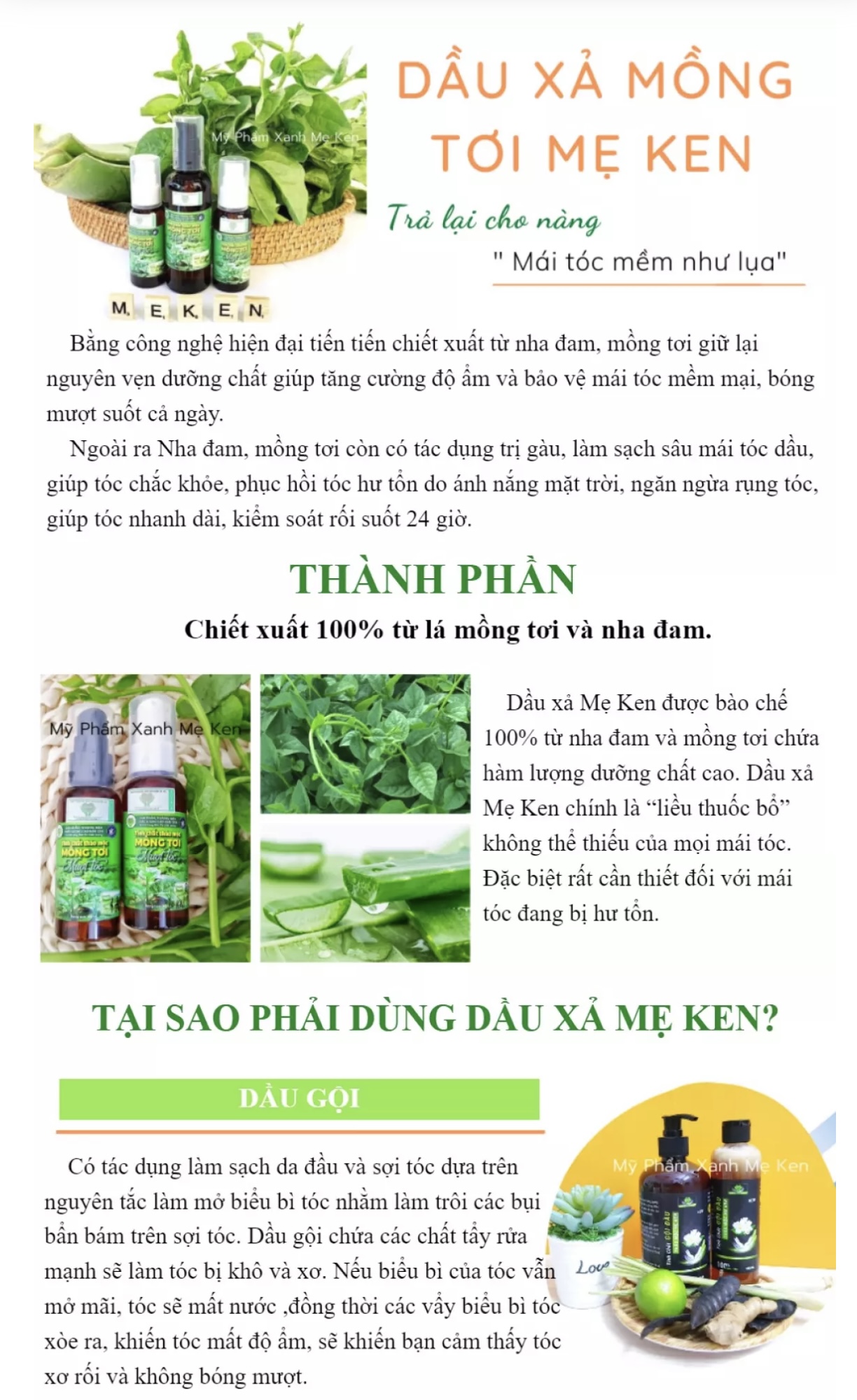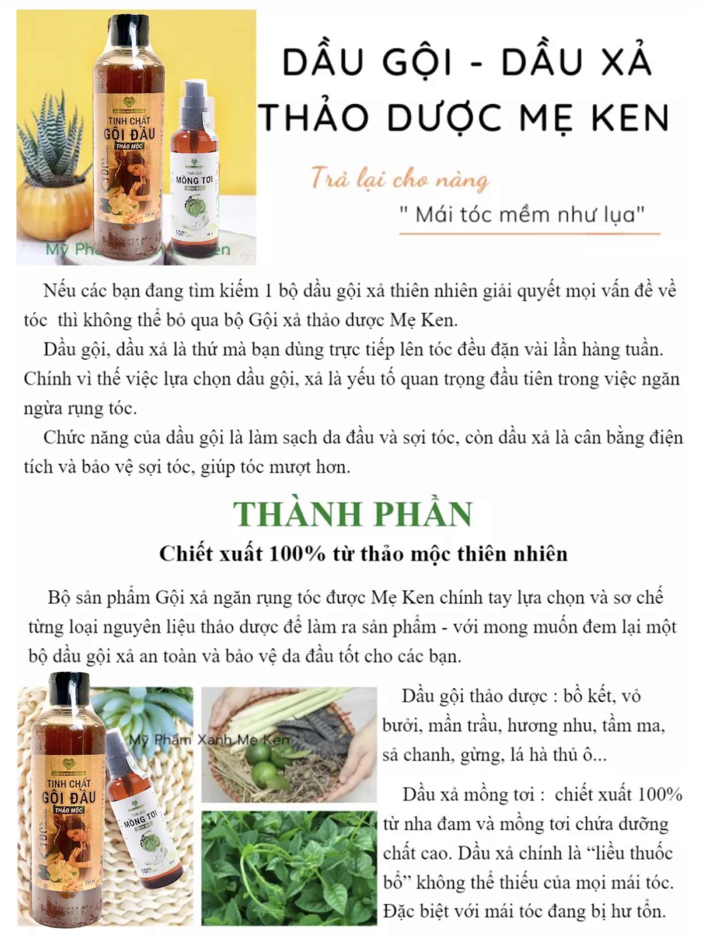 KẾT HỢP: hoàn hảo với Dầu gội thảo mộc Mẹ ken cho bạn giải pháp chăm sóc bền vững lâu dài. Bộ đôi dầu gội và dầu xả Mẹ ken. Chị em nào hay bị rụng tóc, tóc thưa, khô thì đây là giải pháp hữu hiệu cho bạn! Dùng sản phẩm hoàn toàn từ thiên nhiên đã được Mẹ ken kiểm tra rất nghiêm ngặt khi đưa vào sản xuất nên rất yên tâm về chất lượng nhé cả nhà !