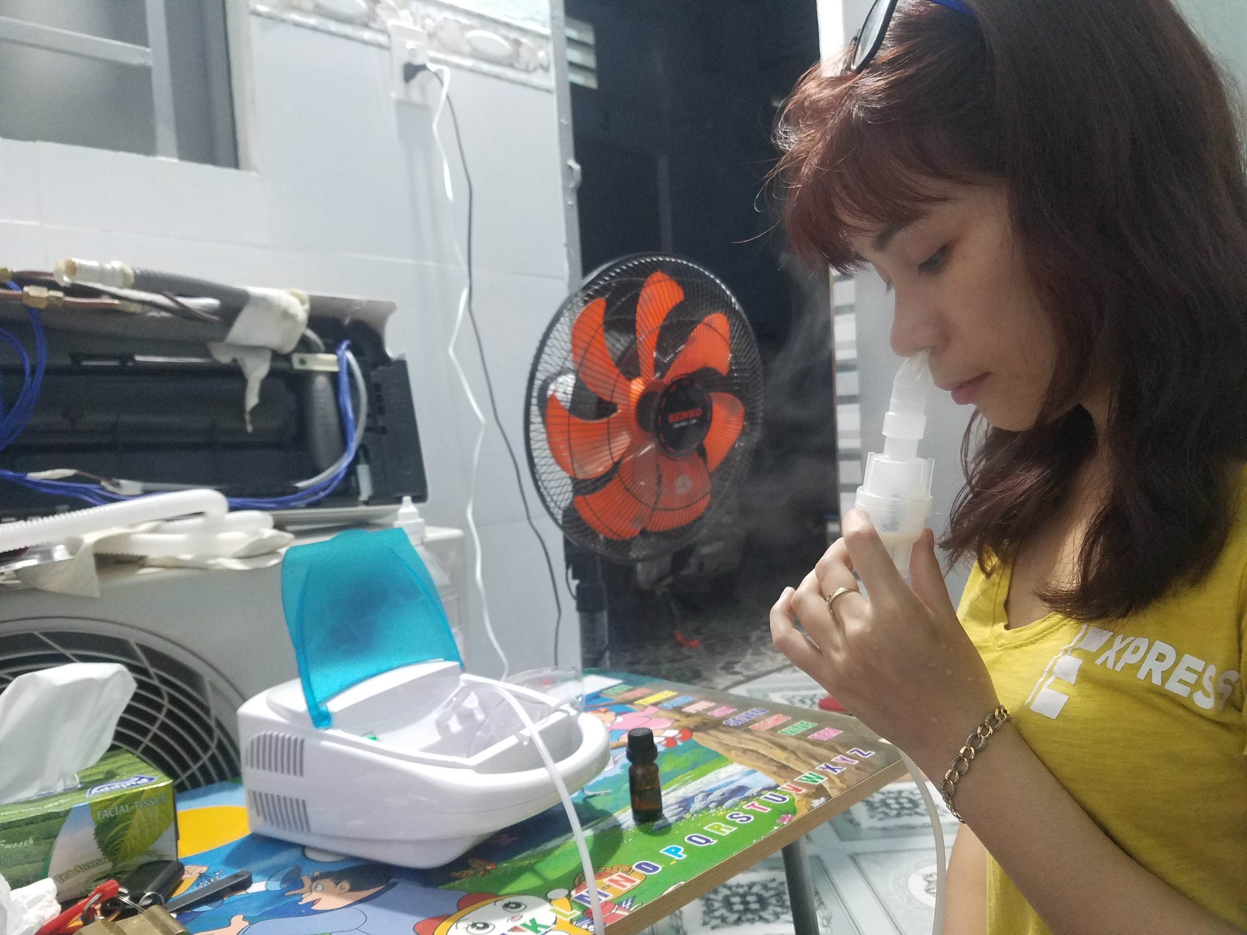 - Còn nhà Shop thì lên mạng mua cái máy xông mũi 450k/cái về nhỏ tinh dầu và nước muối vào xông mũi. Rất hiệu quả.hihi ***Lưu ý: – Vì tinh dầu không tan trong nước, nên phải LẮC ĐỀU trước khi sử dụng để tinh dầu trộn đều trong nước muối, tránh gây rát và tăng hiệu quả sử dụng. – Khoảng 5 ngày đầu sử dụng, sẽ có hiện tượng chảy mũi nhiều, vì tinh dầu kích thích tiết dịch, loại thải vi khuẩn. Sau đó sẽ giảm dẫn. Vì vậy bạn nên kiên trì sử dụng hết liệu trình từ 15 tới 20 ngày (nếu bệnh nặng thì thời gian điều trị sẽ kéo dài hơn). Không nên bỏ giữa chừng. – Bảo quản tinh dầu ở nơi khô ráo tránh ánh nắng mặt trời. – Tinh dầu không được uống trực tiếp mà phải pha loãng – Không bôi lên mắt, vết thương hở, vùng da nhạy cảm.