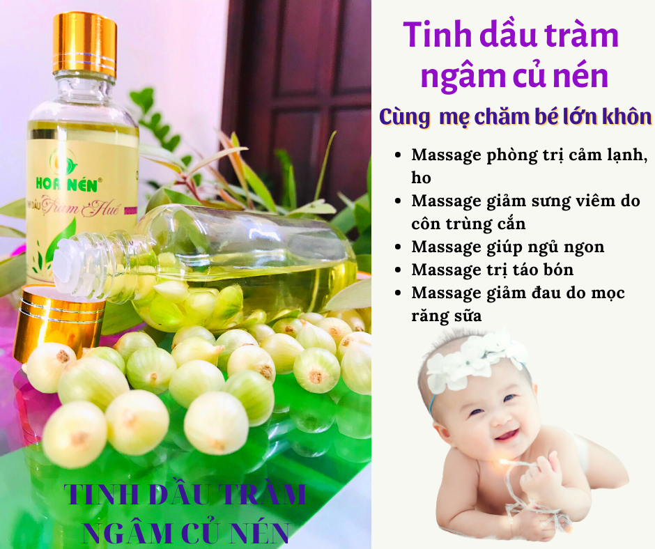 - Tinh dầu tràm nguyên chất/ngâm củ nén là biệt dược từ thiên nhiên rất tốt cho sức khỏe con người, đặc biệt là trẻ sơ sinh, trẻ nhỏ, phụ nữ sau sinh.