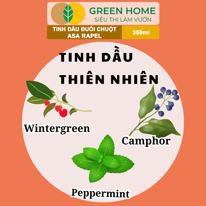 ✨Tinh Dầu Xua Đuổi Chuột Greenhome, ASA Rapel, Chai 350ml, Thảo Mộc, An Toàn Cho Người Và Vật Nuôi