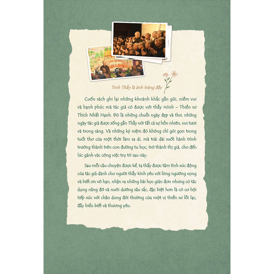 Sau mỗi câu chuyện được kể, ta thấy được tâm tình xúc động của tác giả dành cho người thầy kính yêu với lòng ngưỡng vọng và biết ơn vô hạn, nhận ra những bài học giản đơn nhưng có tác dụng nâng đỡ và nuôi dưỡng sâu sắc, đặc biệt hơn là có cơ hội tiếp xúc với chân dung đời thường của một vị thiền sư lỗi lạc, đầy hiểu biết và thương yêu.