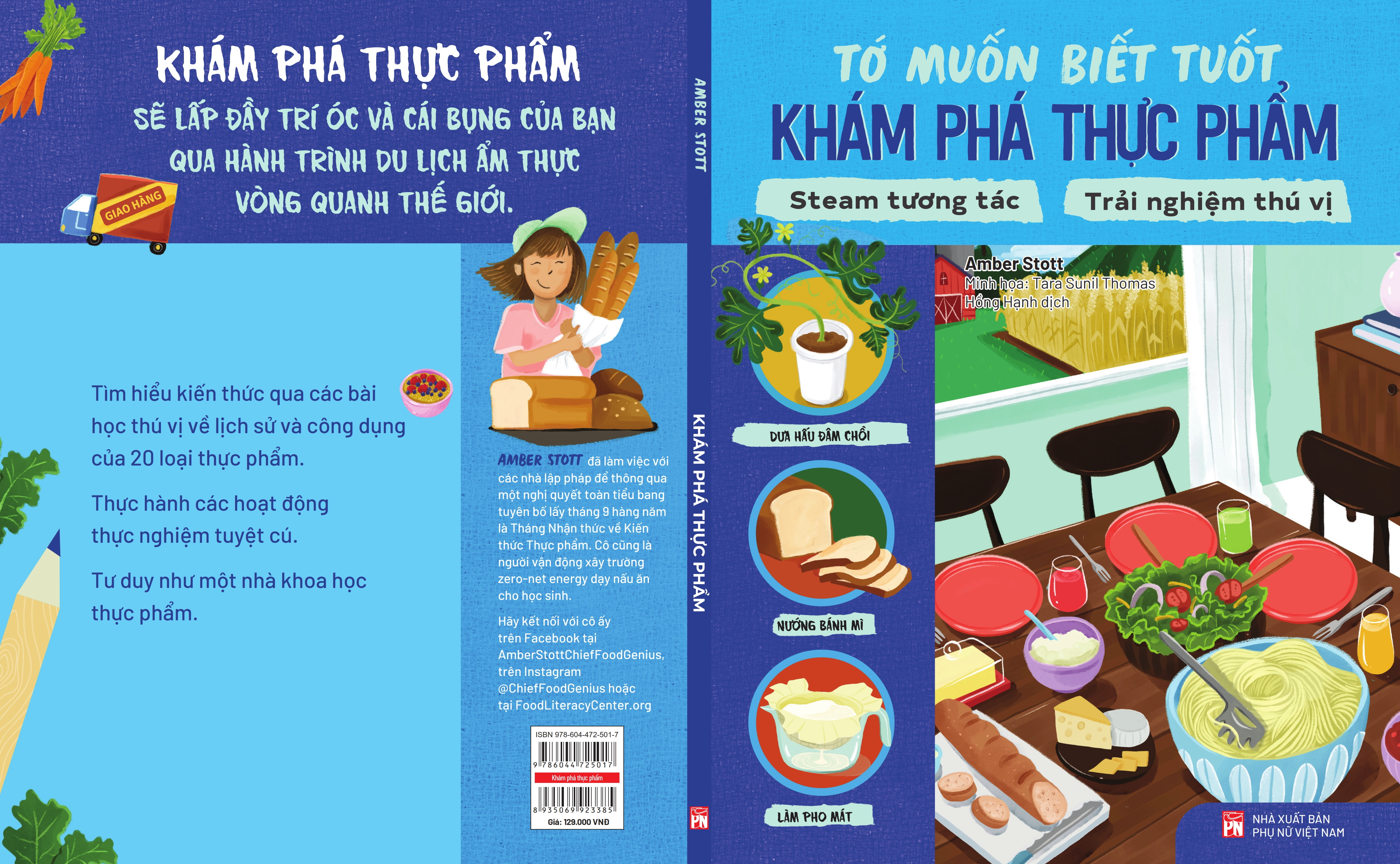 - Tên sách: TỚ MUỐN BIẾT TUỐT – KHÁM PHÁ THỰC PHẨM Tác giả: Amber Stott Minh họa: Tara Sunil Thomas Dịch giả: Hồng Hạnh Thể loại: Bổ trợ kiến thức cho trẻ - Thiếu nhi Khổ sách: 20x25cm Tổng số trang: 100 Giá bìa: 129.000đ Mã ISBN: 978-604-56-4681-6 Năm xuất bản: 2024 KHÁM PHÁ THỰC PHẨM sẽ lấp đầy trí óc và cái bụng của bạn qua hành trình du lịch ẩm thực vòng quanh thế giới. “Tớ muốn biết tuốt: Khám phá thực phẩm” đưa trẻ bước vào hành trình khám phá những bí ẩn về lịch sử, khoa học và văn hoá ẩm thực, những sự thật thú vị và hé lộ về các nền ẩm thực trên thế giới. Đây là một cuốn sách dành cho những người trẻ muốn khám phá thế giới ẩm thực. Ngoài những thông tin bổ ích và độc đáo về thực phẩm như nguồn gốc của thực phẩm, lịch sử văn hoá, cách nó ảnh hưởng đến cơ thể và giúp trẻ cảm thấy kết nối với thực phẩm mà mình ăn hằng ngày… Với 6 chương cùng 20 bài học, không chỉ giúp trẻ hiểu rõ hơn về những món ăn hằng ngày mà còn mang đến những kiến thức thú vị về nguồn gốc, cách chế biến và giá trị dinh dưỡng của thực phẩm. Điểm đặc biệt của cuốn sách là nó không chỉ đưa ra những bài học, lý thuyết khô khan mà sau đó, trẻ sẽ có cơ hội vận dụng kiến thức để hoàn thành hoạt động trải nghiệm, thực hành và được hướng dẫn để ghi chép lại những thu hoạch của bản thân: Bài học, sự thật thú vị về món ăn: Các bài học được minh hoạ đầy màu sắc, giúp độc giả tìm hiểu và nghiên cứu về 20 loại thực phẩm khác nhau. Chúng ta sẽ cùng tìm hiểu lịch sử của những loại thực phẩm này, bao gồm cả nguồn gốc của chúng và các món ăn phái sinh có liên quan. Hoạt động thực nghiệm: Vận dụng dụng các kiến thức ở phần trên qua hoạt động trải nghiệm, thực hành. Mỗi một hoạt động thực nghiệm là một công thức nấu ăn hoặc thí nghiệm khoa học kèm theo các nguyên vật liệu cần thiết và hướng dẫn cụ thể để hoàn thành hoạt động. Ghi chép khoa học: Giúp trẻ hình thành lối tư duy như một nhà khoa học và nắm bắt những gì đang được học. Trẻ sẽ phải tự đào sâu suy nghĩ vận dụng các kiến thức ở phần bài học, trả lời những câu hỏi như: Bạn đã quan sát thấy được những gì? Bạn đã thực hành những gì? Mối liên hệ giữa hoạt động thực nghiệm này với văn hoá lịch sử là gì?