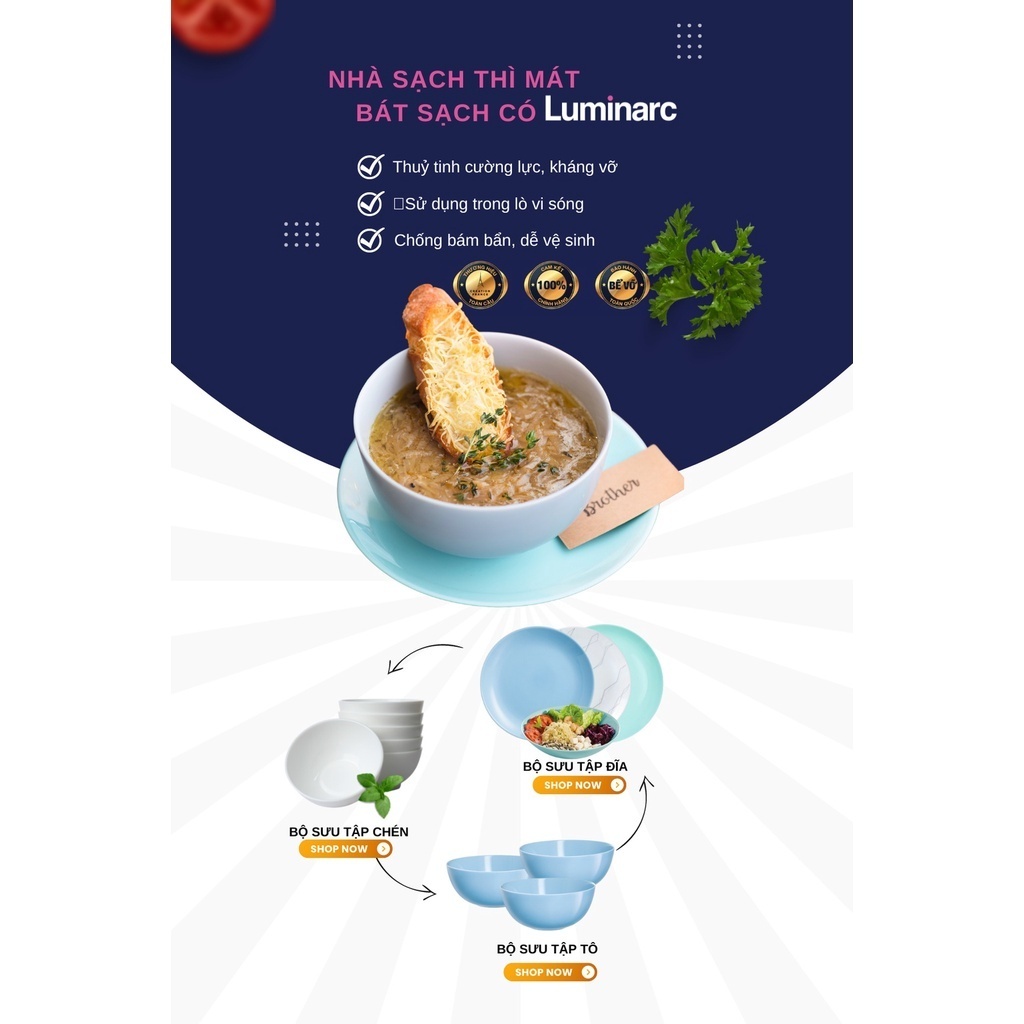 - Tất cả sản phẩm tô, chén, đĩa của Luminarc đều có thể sử dụng trong lò vi ba & máy rửa bát.