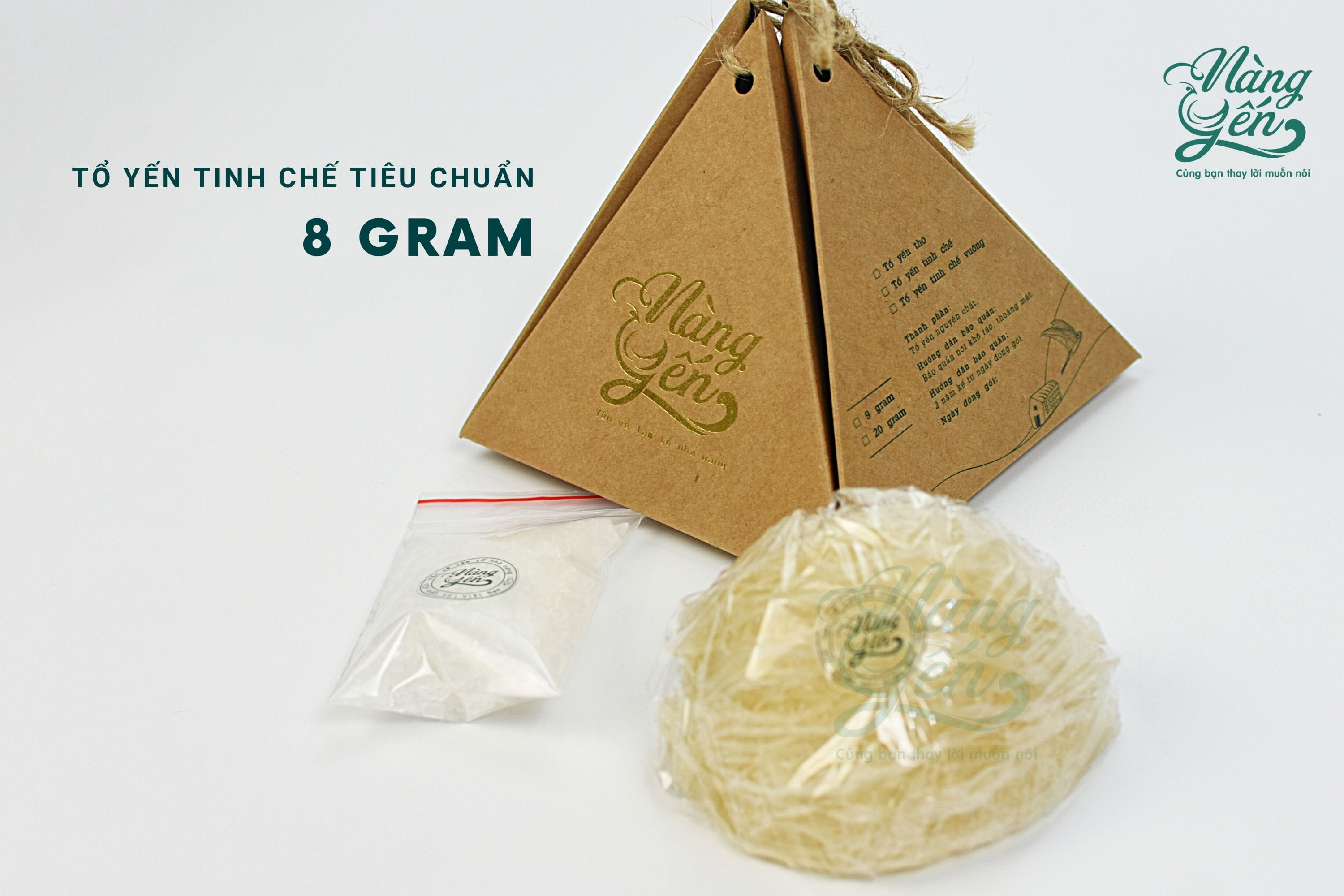 Tổ yến tinh chế tiêu chuẩn là tổ yến đã được làm sạch lông và tạp chất từ tổ yến thô (tổ yến còn lông). Với phương pháp thẩm thấu ngược, và tay nghề điêu luyện của những người thợ, mà tổ yến tinh chế tiêu chuẩn của Nàng Yến vẫn còn giữ được mùi thơm nồng, đặc trưng của yến, tỉ lệ sợi giữ lại cao, phần xơ mướp không bị nhũn, mềm. Quý khách chỉ cần đem về và chế biến món ăn.