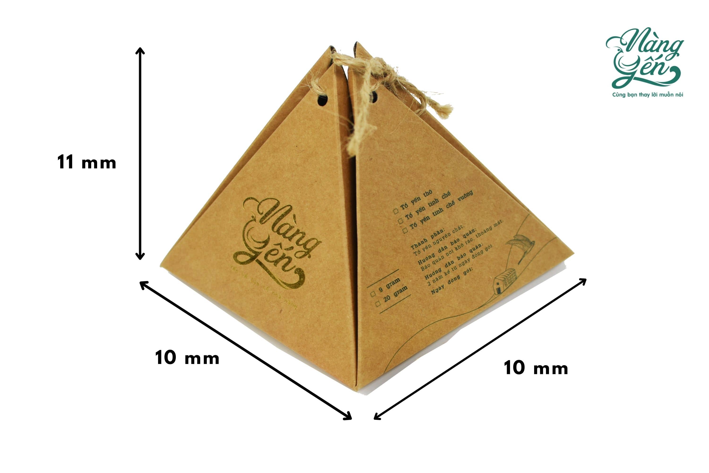 Hộp giấy lục giác kích thước 3x3x7 (cm) Gồm 1 phần yến 1,5 g + 1 gói đường phèn 7 g Tặng kèm 1 hũ thủy tinh tiệt trùng dùng để chưng yến 100% yến