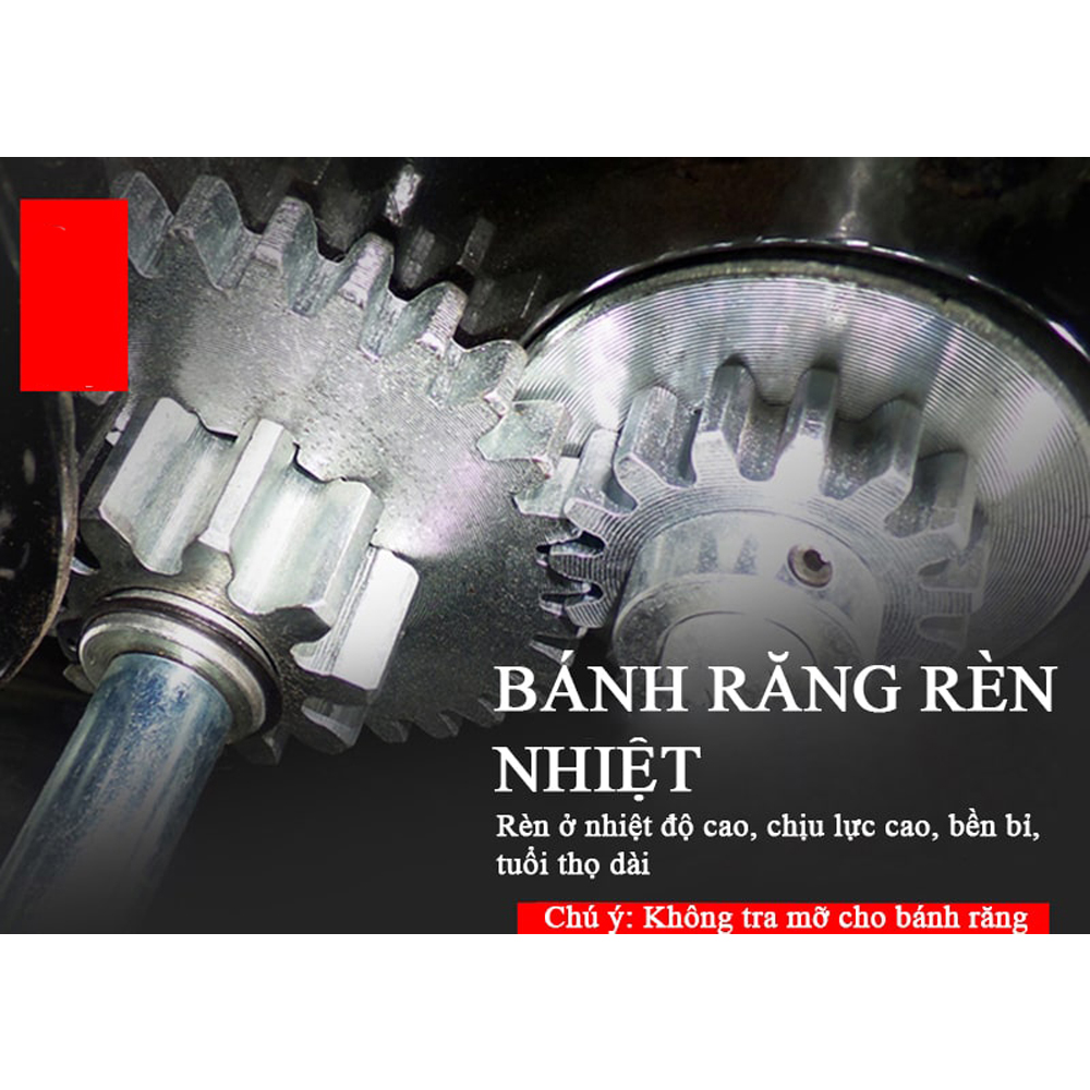- Bánh răng: máy trang bị các bánh răng thép đã trải qua rèn nhiệt đảm bảo khả năng chịu lực cao, bền bỉ, tuổi thọ dài. Mặt khác, được thiết kế tỉ mỉ, chính xác đảm bảo ăn khớp với nhau giúp máy vận hành trơn tru.