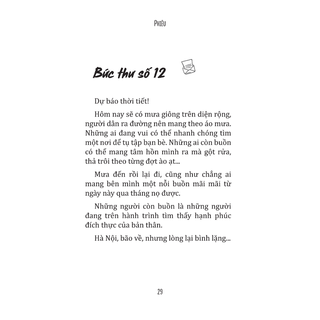 Tác giả Phiêu là một diễn viên tại Nhà hát Kịch Việt Nam, đồng thời là một content creator trên YouTube, Spotify, và sở hữu kênh TikTok “PHIÊU nói NHIỀU” có hơn hai trăm nghìn followers. Với hơn một trăm số radio trên kênh TikTok, tác giả đã chia sẻ và đồng hành cùng rất nhiều bạn trẻ nhẹ nhàng trải qua những ngày khi mà nỗi cô đơn bủa vây.