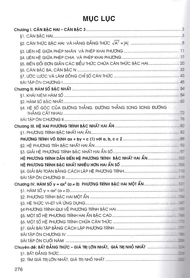 Cuối mỗi phần có một số Bài đọc thêm về lịch sử toán học. Riêng các nội dung về hình học tổ hợp và phương trình với nghiệm nguyên được giới thiệu trong các cuốn