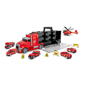 ✨TOYSTAR - 666-03K Mô hình Bộ xe chuyên chở cứu hộ chuyển gồm 5 ô tô, 1 máy bay, 4 biển báo giao thông (KT 42x9x13cm)